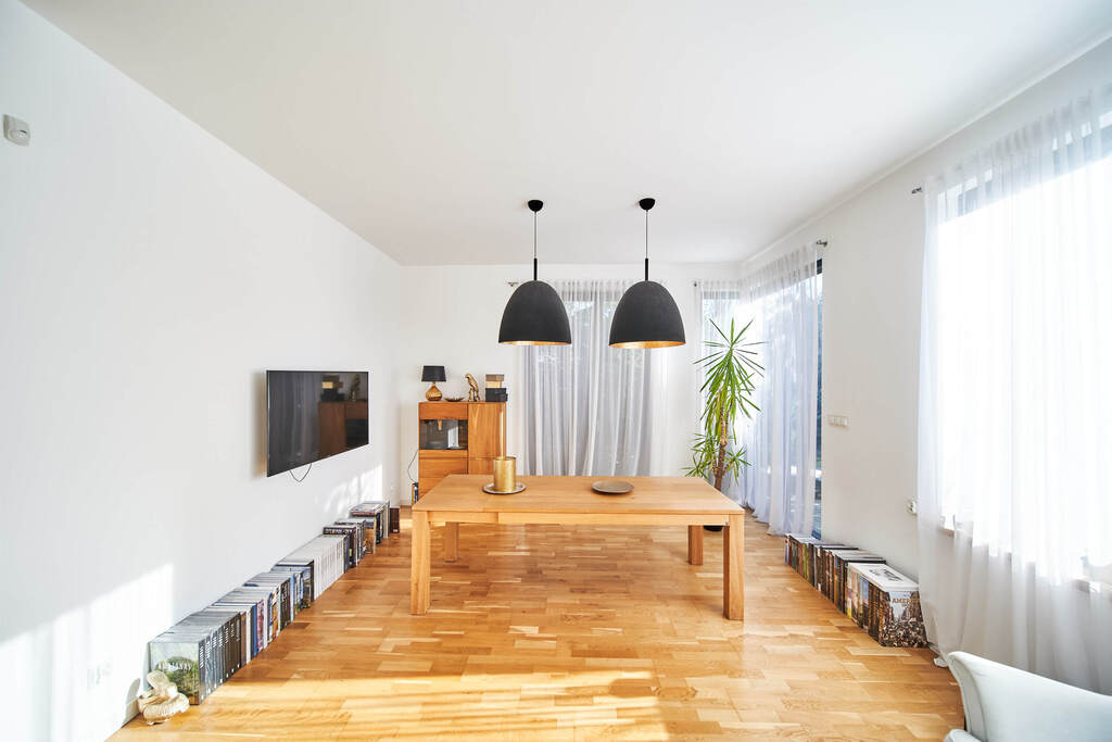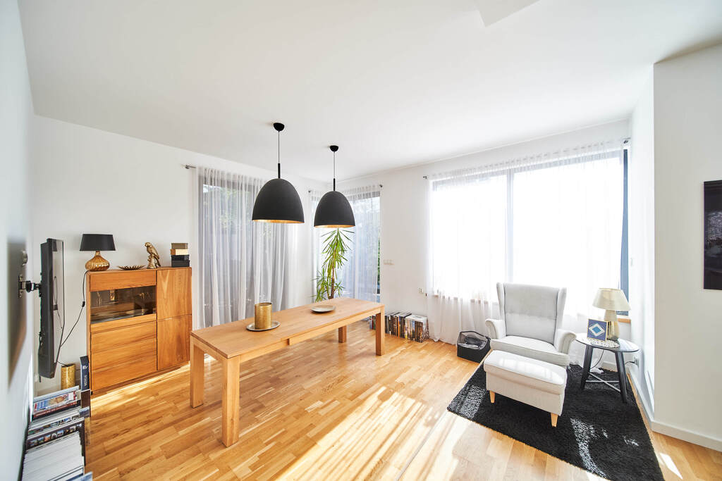 Wysoki standard wykończenia ? naturalne materiały, dębowe podłogi, drewniane okna, kuchnia ze sprzętem premium.