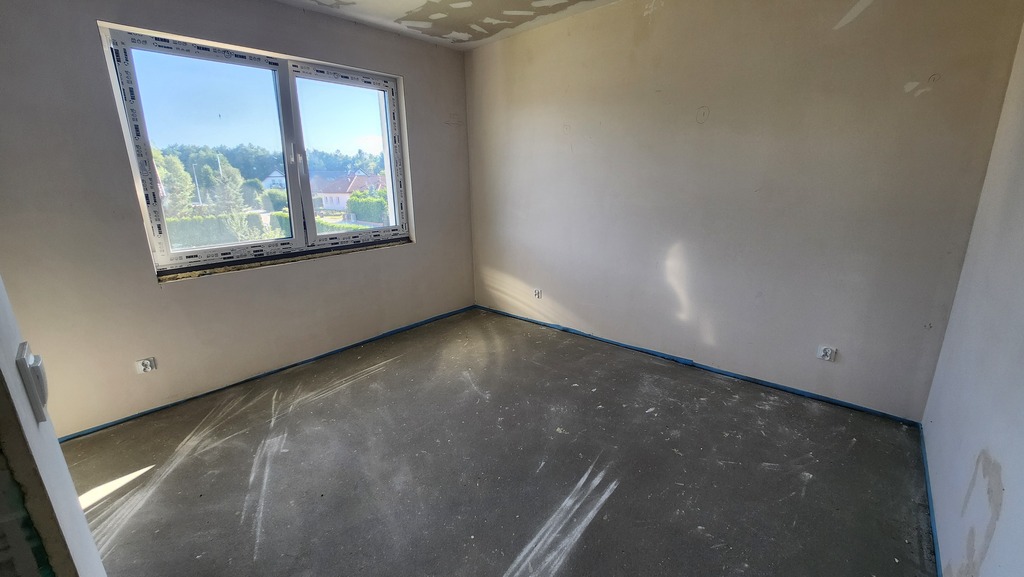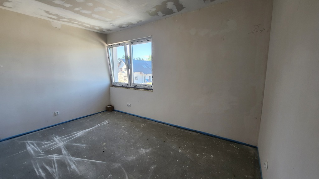 Niewątpliwym atutem jest brak skosów na piętrze, dzięki czemu pokoje są bardzo ustawne.