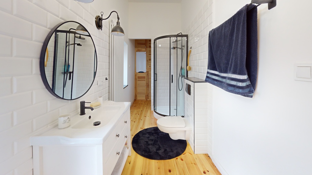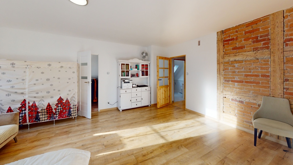 - Dusza i Historia: Pieczołowicie odrestaurowano oryginalne, stuletnie podłogi drewniane, zachowując ich niepowtarzalny urok. Na parterze zachowano oryginalną belkę stropową, a na piętrze wyeksponowano odrestaurowany pruski mur.