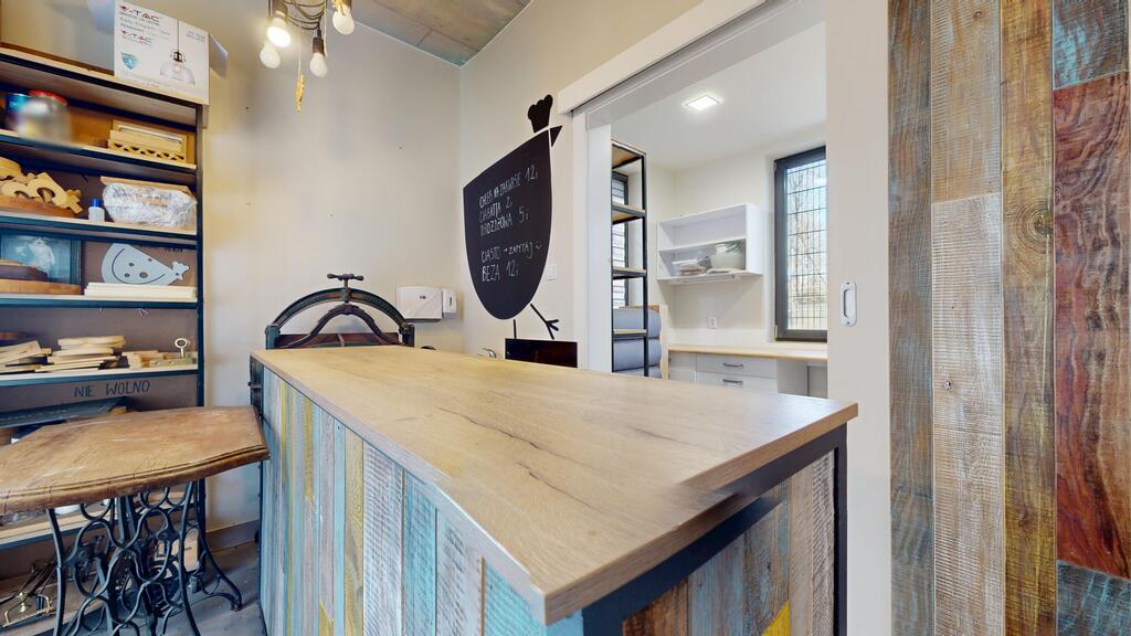 - antresola funkcjonująca jako szatnia oraz zaplecze dla personelu.
