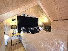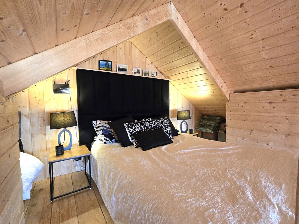 Antresola: Przytulna sypialnia z dużym, podwójnym łóżkiem.