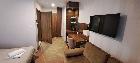 - pokój z podwójnym łóżkiem, szafą garderobianą oraz wygodnym miejscem do siedzenia z ekspresem do kawy,