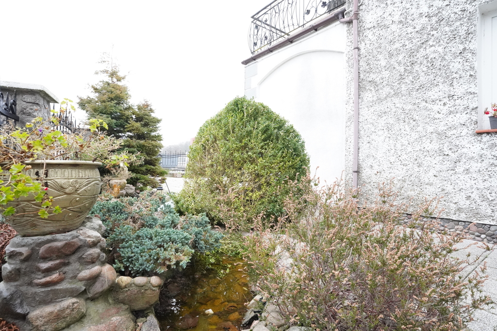 Cała posesja ładnie zagospodarowana z licznymi krzewami , altanami, placem zabaw dla dzieci oraz miejscem do grillowania.