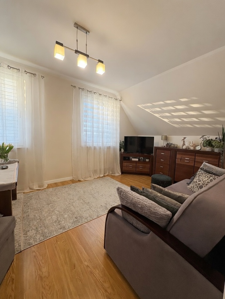 Przytulne mieszkanie 3-pokojowe na Mierzynie | 52 m? | ul. TopolowaNa sprzedaż funkcjonalne i bardzo zadbane mieszkanie o powierzchni 52 m?, położone w spokojnej części Mierzyna przy ul. Topolowej. Lokal znajduje się na poddaszu kameralnego budynku i dzięki skosom ma przyjemny, domowy klimat.To dobre miejsce zarówno dla pary, rodziny z dzieckiem, jak i osób szukających spokojnej lokalizacji blisko Szczecina.Układ mieszkania:? przestronny salon z częścią jadalnianą? sypialnia? dodatkowy pokój (gabinet / pokój dziecięcy)? oddzielna kuchnia z oknem dachowym? łazienka? przedpokójMieszkanie jest jasne i dobrze doświetlone. Duże okna w salonie sprawiają, że przestrzeń dzienna jest bardzo przyjemna i naturalnie oświetlona przez większość dnia.Najważniejsze atuty:? spokojna i zielona okolica? funkcjonalny układ pomieszczeń? mieszkanie zadbane, gotowe do wprowadzenia? kameralna zabudowa? szybki dojazd do Szczecina? dużo naturalnego światłaLokalizacjaMierzyn to jedna z najbardziej poszukiwanych lokalizacji pod Szczecinem. W pobliżu znajdują się:? sklepy i punkty usługowe? szkoła i przedszkole? tereny spacerowe i rekreacyjne? dogodny dojazd do centrum SzczecinaTo miejsce idealne dla osób, które chcą mieszkać spokojnie, ale blisko miasta.Zainteresowanych zapraszam do kontaktu i na prezentację mieszkania.*powyższe informacje zostały sporządzone na podstawie oświadczeń i nie są ofertą w rozumieniu przepisów prawa - zalecamy ich osobistą weryfikację.