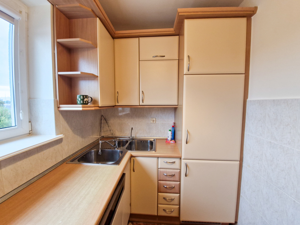 • Kuchnia umeblowana na wymiar z pełnym wyposażeniem (lodówko-zamrażarka, kuchenka elektryczna, płyta grzewcza, zmywarka, pralka).