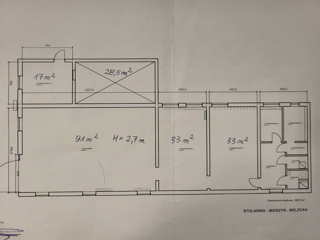 Powierzchnie pomieszczeń: 91m2 + 33m2 + 33m2 dodatkowo powierzchnie sanitarne z toaletą oraz oddzielne pomieszczenie które pełnić może funkcję małego biura.