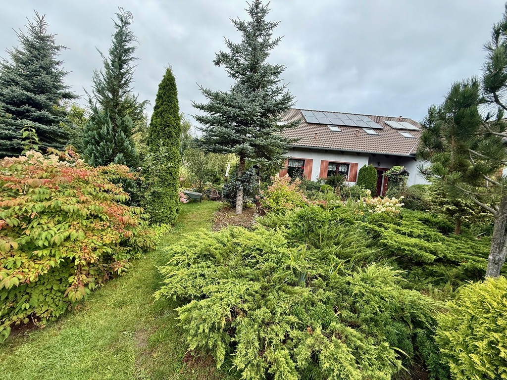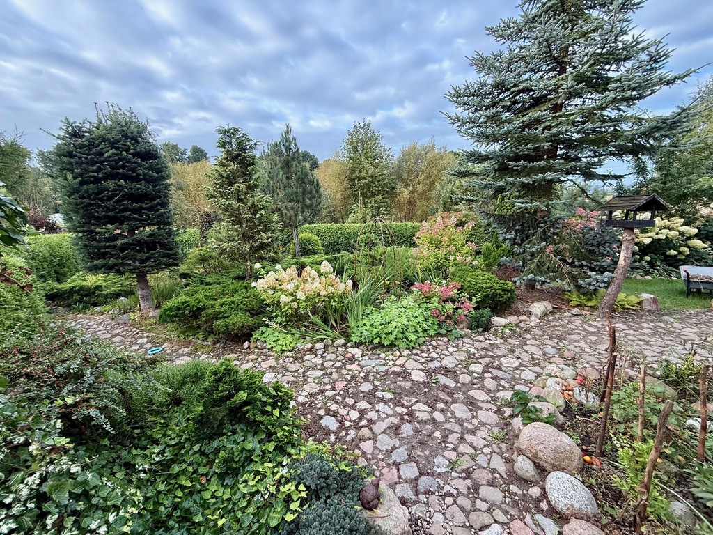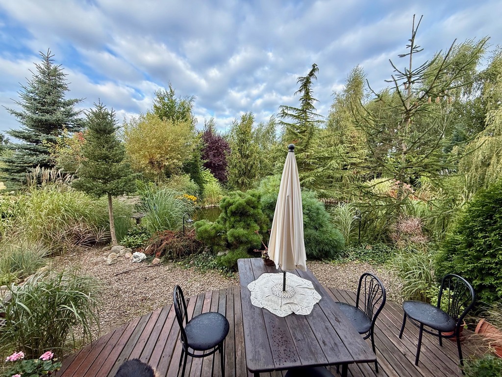 Ogród: Działka o powierzchni 1946 m? jest pięknie zagospodarowana ? znajdziesz tu mnóstwo roślin ozdobnych, drzewa, krzewy oraz duży staw z pomostem, który nadaje posesji niepowtarzalnego klimatu. Idealne miejsce na relaks lub poranną kawę przy śpiewie ptaków.