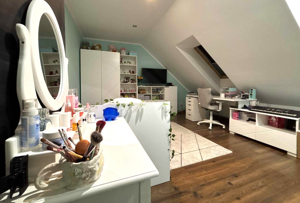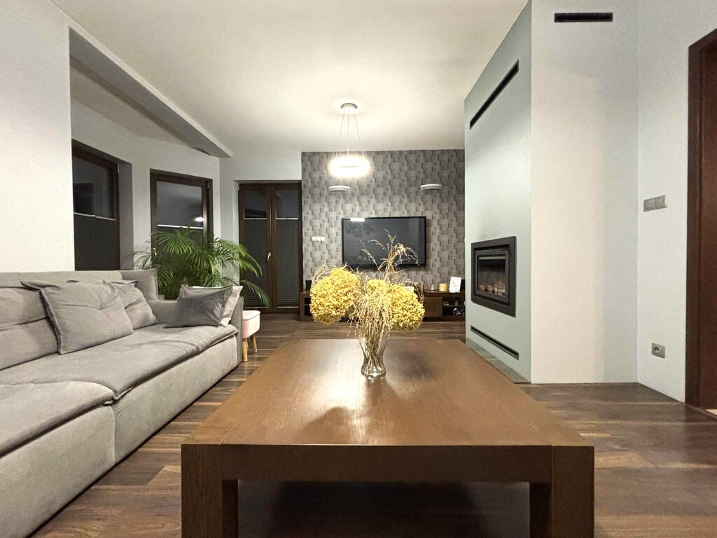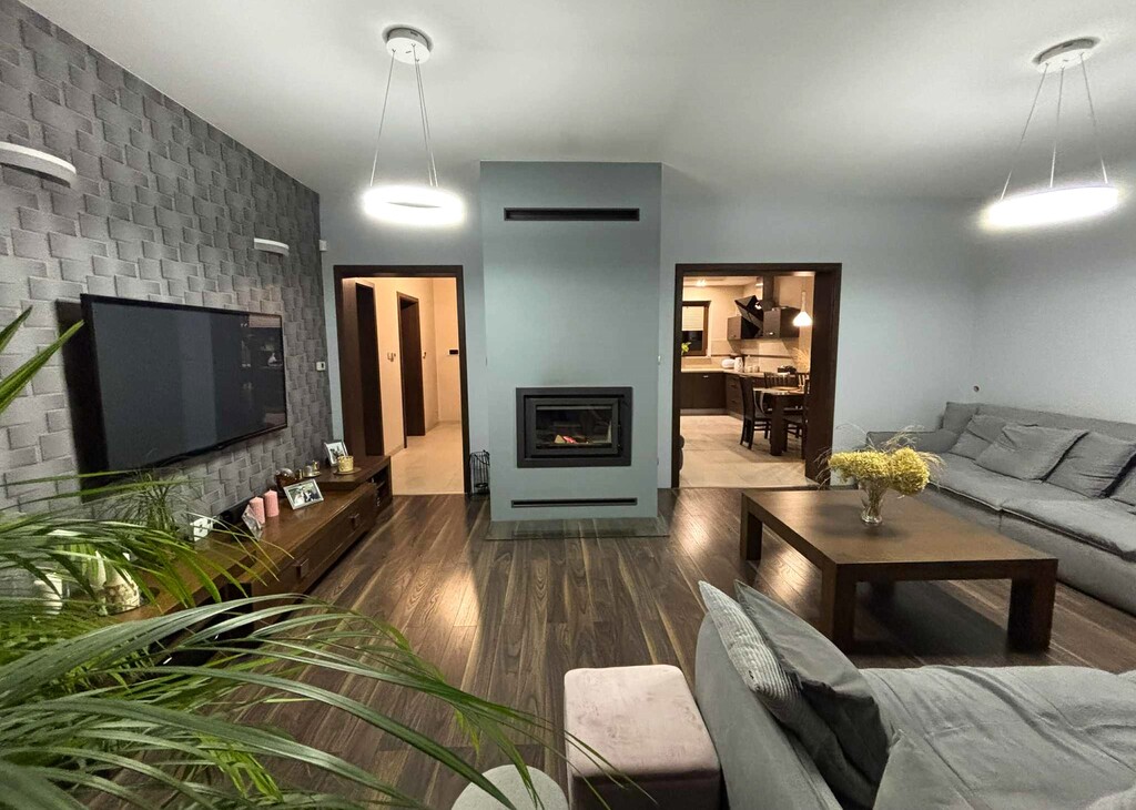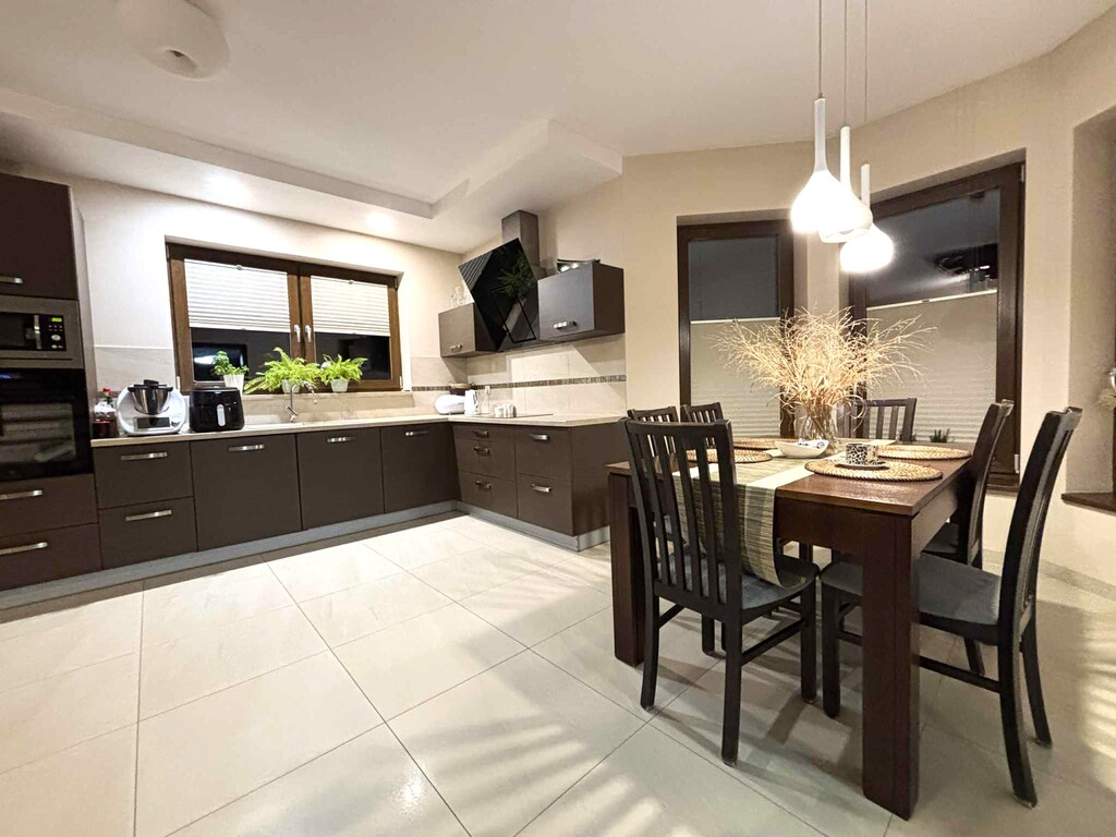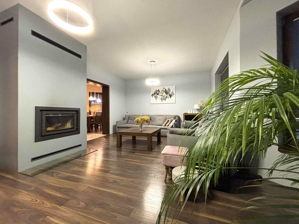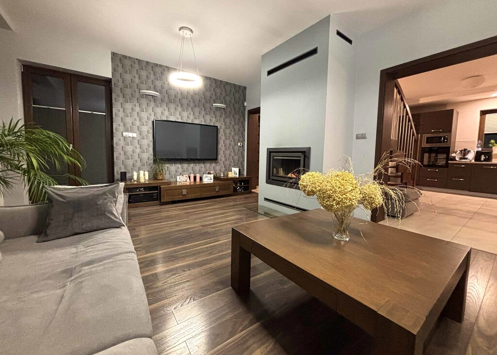 Mamy przyjemność przedstawić Państwu nową ofertę domu wolnostojącego położonego na pięknej działce w zacisznym i spokojnym miejscu, w bliskim sąsiedztwie lasu- w miejscowości Pniewo.Lokalizacja:Bardzo atrakcyjna i spokojna okolica sprzyjająca relaksowi, można tu poczuć pełną prywatność i oderwać się od codziennego zgiełku.W miejscowości sklep spożywczy, bardzo dobry dojazd do Gryfina około 6 km, odległość od Szczecina około 30 km.Czyste jezioro w miejscowości Steklno, oddalone jest o ok 7 km, w sezonie letnim otwarte jest kąpielisko, na plaży znajduje się plac zabaw, boisko do siatkówki, przebieralnia, toalety, a także miejsce na ognisko.W niedalekiej odległości przebiega ścieżka rowerowa między Gryfinem a Swobnicą, która jest częścią szlaku Blue Velo, i prowadzi do Trzcińska-Zdroju. Trasa oferuje wiele widokowych miejsc, a także zwiedzanie zamku joannitów w Swobnicy.W sąsiedztwie nieruchomości znajduje się nowa zabudowa mieszkaniowa jednorodzinna i las.Dojazd do posesji dobry -drogą asfaltową, a następnie przez krótki odcinek oświetloną drogą wewnętrzną.Opis technicznyBudynek wykonany w technologii tradycyjnej- parterowy, wolnostojący z poddaszem użytkowym i garażem dwustanowiskowym w bryle budynku.Powierzchnia użytkowa domu wynosi - 171,36 m2 , działka 2022 m2.Dom o bardzo funkcjonalnym układzie pomieszczeń, jego przestrzeń wyraźnie dzieli się na strefę dzienną, strefę prywatną (nocną) i gospodarczą.Jest to to idealna propozycja dla rodziny 4-5-osobowej. Wszystkie pomieszczenia są dobrze doświetlone, ustawne, wysokość 275 cm.Strefę dzienną tworzy komfortowy salon z wykuszem, kominkiem w jego centralnej części i wyjściem na taras (27 m2).Przy salonie znajduje się duża kuchnia z jadalnią w wykuszu, który jest efektownym i atrakcyjnym elementem architektonicznym, idealne miejsce na stół, doskonale doświetla też wnętrze, ażurowe drewniane schody otwarte na jadalnie, dodatkowo uatrakcyjniają tą część domu (18 m2)W dalszej części parteru pokój, mogący pełnić funkcję gabinetu lub pokoju gościnnego (12, 6 m2) z wyjściem do ogrodu , hal (7 m2) Łazienka z wc z oknem (3 m2), pomieszczenie gospodarcze, przy którym znajduje się praktyczna szafa w zabudowie (6 m2) oraz duży garaż (32,5 m2)Strefa nocna znajdująca się na poddaszu składa się :- trzech sypialni z każdej wyjście na balkon (14,9/14,3/10,3 m2) hallu (9,9 m2), dużej łazienki (11,4 m2) z miejscem na wannę i kabinę prysznicową, oraz pokoju nad garażem, który znajduje się za łazienką (15 m2) i świetnie sprawdzi się jako pralnia, garderoba, czy pokój rekreacyjny lub domowe spa. Nad tą kondygnacją strych.Standard wykończeniaDom wykończony w wysokim standardzie i utrzymany w bardzo dobrym stanie technicznym. To wnętrze łączy w sobie funkcjonalność z przytulnością, dominują w nim ciepłe kolory., które sprawiają, że dom jest przyjazny i klimatyczny.W całym budynku okna trzyszybowe, drzwi zewnętrzne i wewnętrzne dobrej jakości.Podłogi w salonie, gabinecie i na poddaszu panele dobrej klasy, idealnie komponujące się z kolorem stolarki okiennej i drzwiowej .W kuchni i jadalni bardzo ładny gres, świetnie wydobywający kolor zabudowy kuchennej i schodów.Ściany gładzone w pastelowych kolorach. Łazienka na parterze wykończona w glazurze i terakocie z kabiną prysznicową, druga na poddaszu do własnej aranżacjiW cenie domu zostaje zabudowa meblowa w kuchni wraz z wyposażeniem dobrej klasy, oraz szafa w zabudowie zamontowana na parterze budynku.OgródPosesja ogrodzona, poza budynkiem mieszkalnym budynek gospodarczy, oraz nowa drewniana altana.Działka płaska z ogromnym potencjałem aranżacji zieleni, jej powierzchnia pozwala, także na wydzielenie strefy: wypoczynkowej, rekreacyjnej, użytkowej. budowę placu zabaw, basenu, czy też kuchni letniej.Brama wjazdowa jak również brama garażowa z napędem elektrycznym. Wjazd przed budynkiem wyłożony polbrukiem.W ogrodzie studnia do podlewania, a także kanał samochodowy.MediaBudynek podłączony do sieci wodociągowej i kanalizacyjnej, energia elenktyczna, gaz, światłowód. Źródło centralnego ogrzewania piec gazowy. Dodatkowo kominek z wyprowadzonym kanałem dystrybucji ciepłego powietrza. Ogrzewanie podłogowe na parterze budynku, na poddaszu w łazience. Dom jest bardzo ciepły i ekonomiczny w utrzymaniu Zamontowana instalacja fotowoltaiczna.Podatek od nieruchomości wynosi 800 zł rocznie.Prezentacja w czasie dogodnym dla klientów. Polecamy to wyjątkowy, klimatyczny dom w bardzo atrakcyjnej lokalizacji.*powyższe informacje zostały sporządzone na podstawie oświadczeń i nie są ofertą w rozumieniu przepisów prawa - zalecamy ich osobistą weryfikację.