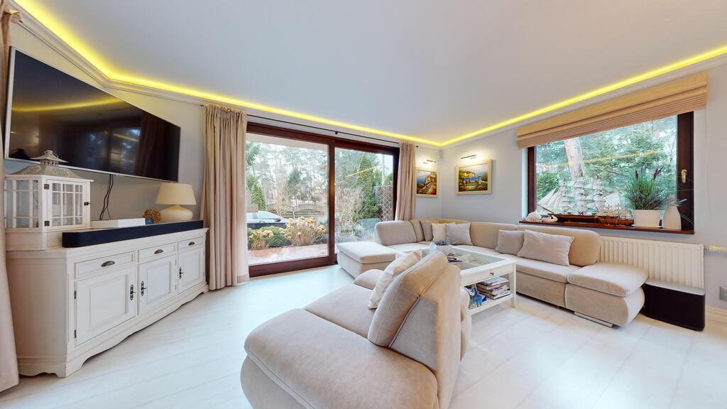 Całość ogrodzona, wybudowana z wysokiej jakości materiałów, w dobrym stanie technicznym, położona na zagospodarowanej działce o wielkości 938 m2. Ogród od strony południowej z domkiem letniskowym dla dzieci, grillem murowanym oraz miejscem do biesiadowania. Teren zadbany z dużą ilości nasadzeń. Wszystko urządzone z klasą i z dbałością o każdy szczegół.