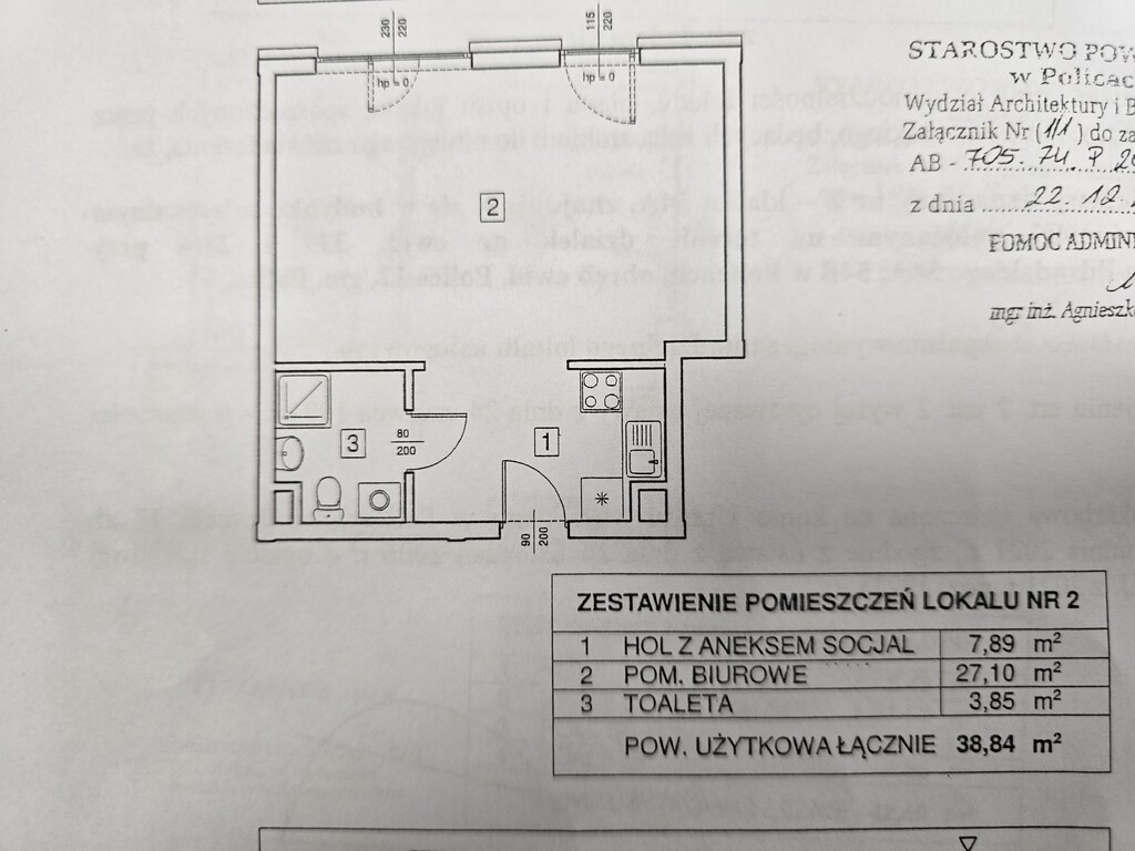 Oferujemy na sprzedaż mieszkanie o powierzchni 38,84m2 na które składa się salon z wyjściem na mały ogródek (pas zieleni przypisany do mieszkania), przedpokój z aneksem kuchennym i łazienka z wc. Lokal znajduje się na parterze dwupiętrowego budynku w Policach. Standard mieszkania do wykończenia, ściany tynkowane, zamontowane gniazdka elektryczne, grzejniki i przyłącza wodno-kanalizacyjne. Kupujący są zwolnieni z podatku PCC. Lokale do wydania od zaraz. Niewątpliwym atutem są niskie koszty eksploatacyjne, na całym terenie jest tylko jeden budynek dwuklatkowy, więc możemy cieszyć się kameralnym otoczeniem. Serdecznie zapraszam na prezentację*powyższe informacje zostały sporządzone na podstawie oświadczeń i nie są ofertą w rozumieniu przepisów prawa - zalecamy ich osobistą weryfikację.