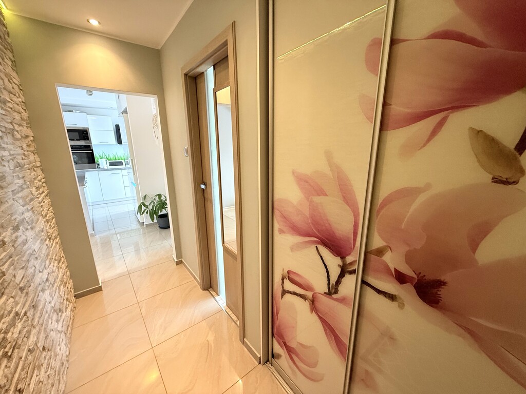 - w dwóch pokojach stałe zabudowy szaf oraz w przedpokoju.