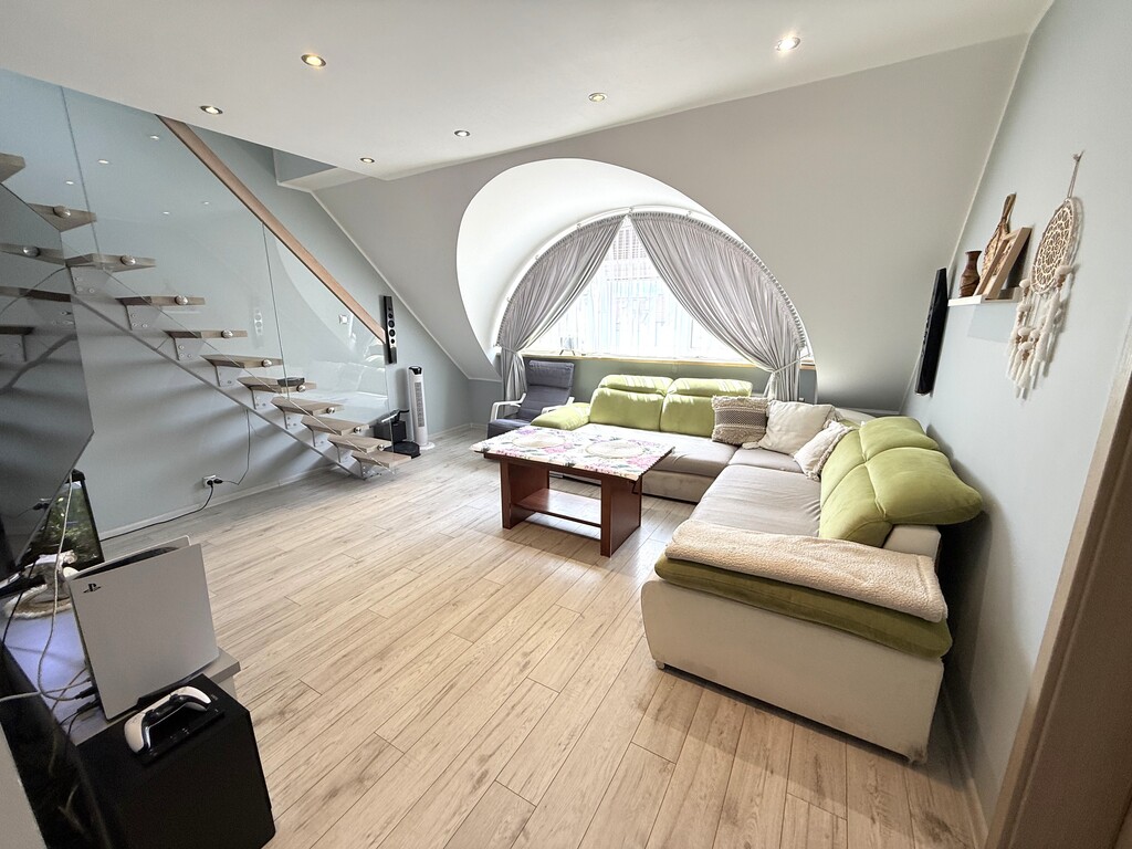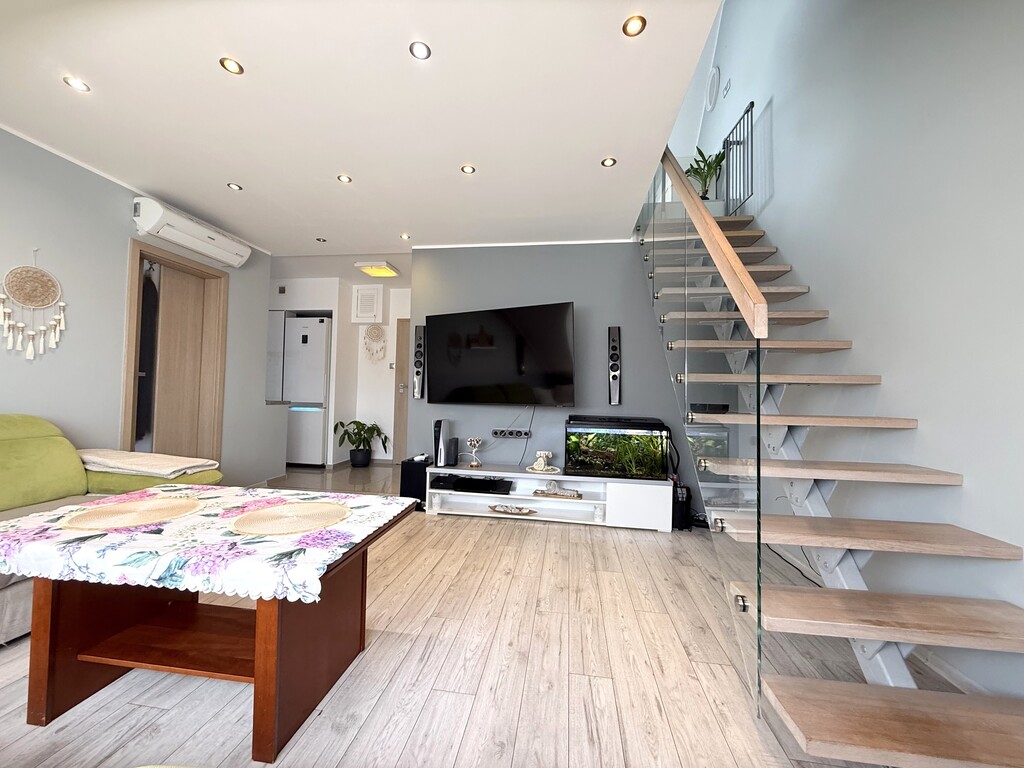 Na sprzedaż nowoczesne, mieszkanie dwupoziomowe, położone w niskim budynku z cegły na Przecławiu.