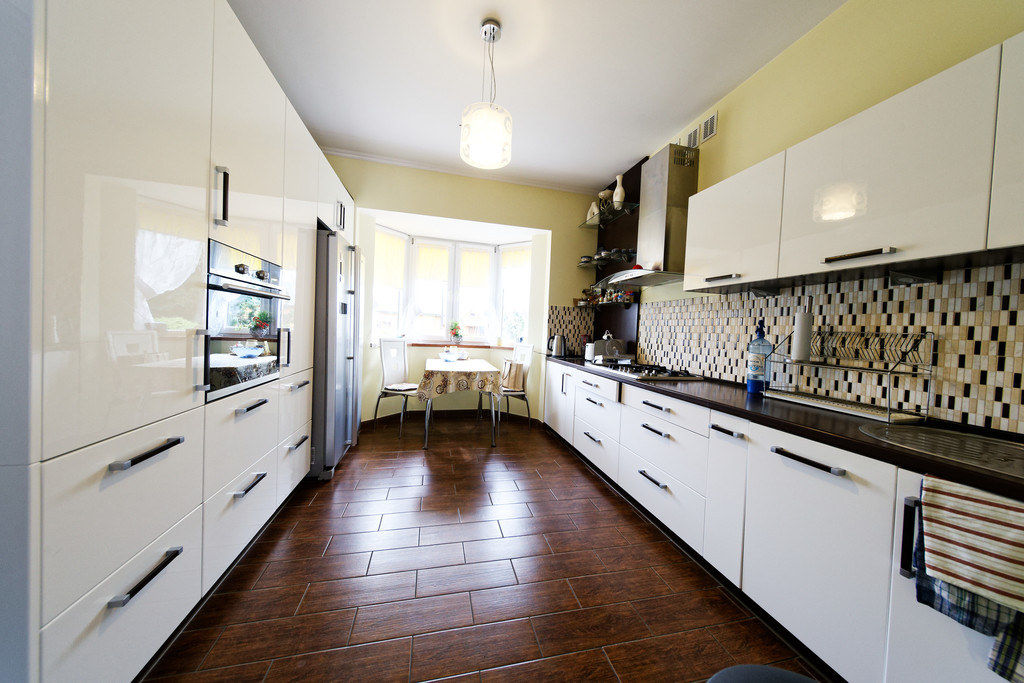 Na korytarzu między pokojami usytuowany jest aneks kuchenny