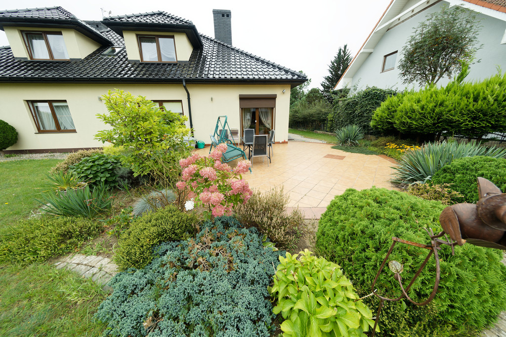 Część rekreacyjną stanowi mini plac zabaw, altana z miejscem do grilowania.