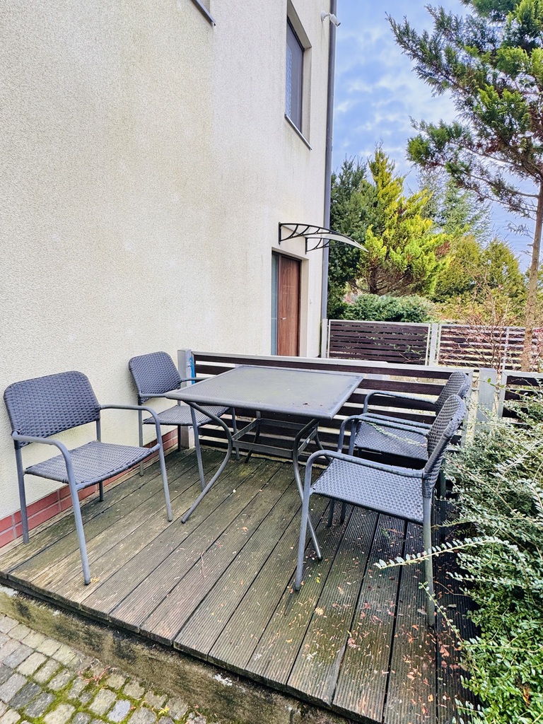 Przy nieruchomości do indywidualnego korzystania przez właściciela ogródek częściowo utwardzony (deska tarasowa) oraz teren zielony z tarasem od strony wejścia do nieruchomości.