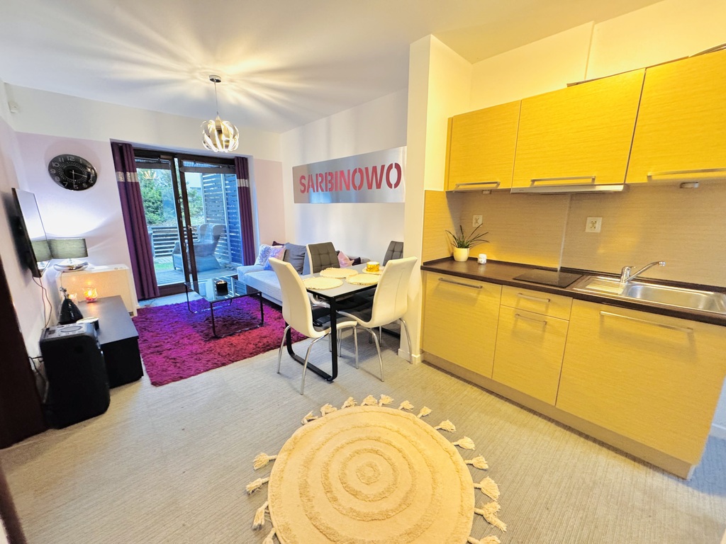 Na sprzedaż dwupokojowy apartament o powierzchni ok. 32 m2 na parterze budynku z 2011 r. na zamkniętym, ogrodzonym osiedlu w Sarbinowie Obiekt położony w odległości ok. 300 m do morza.