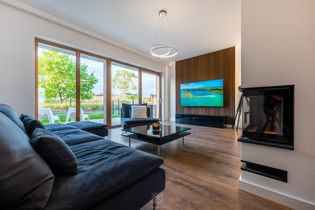 - przestronny salon z kominkiem i wyjściem na taras