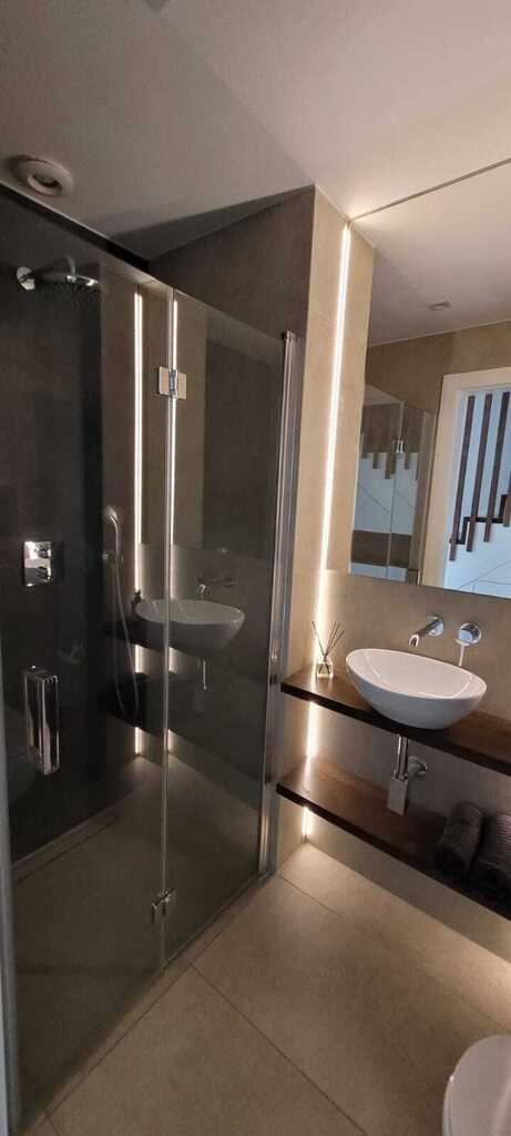 - łazienka z prysznicem oraz toaletą