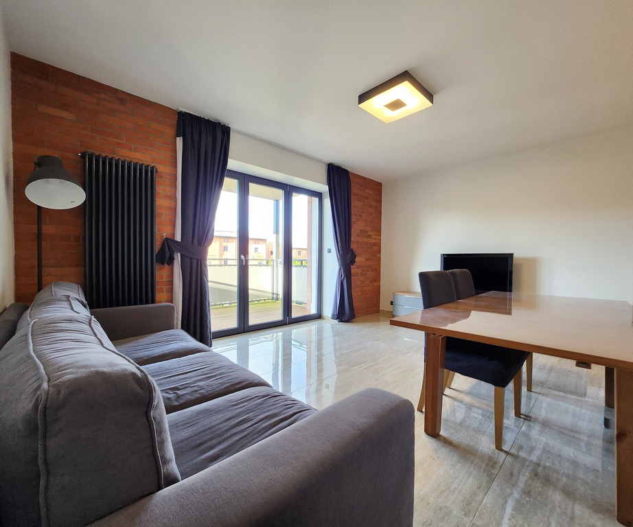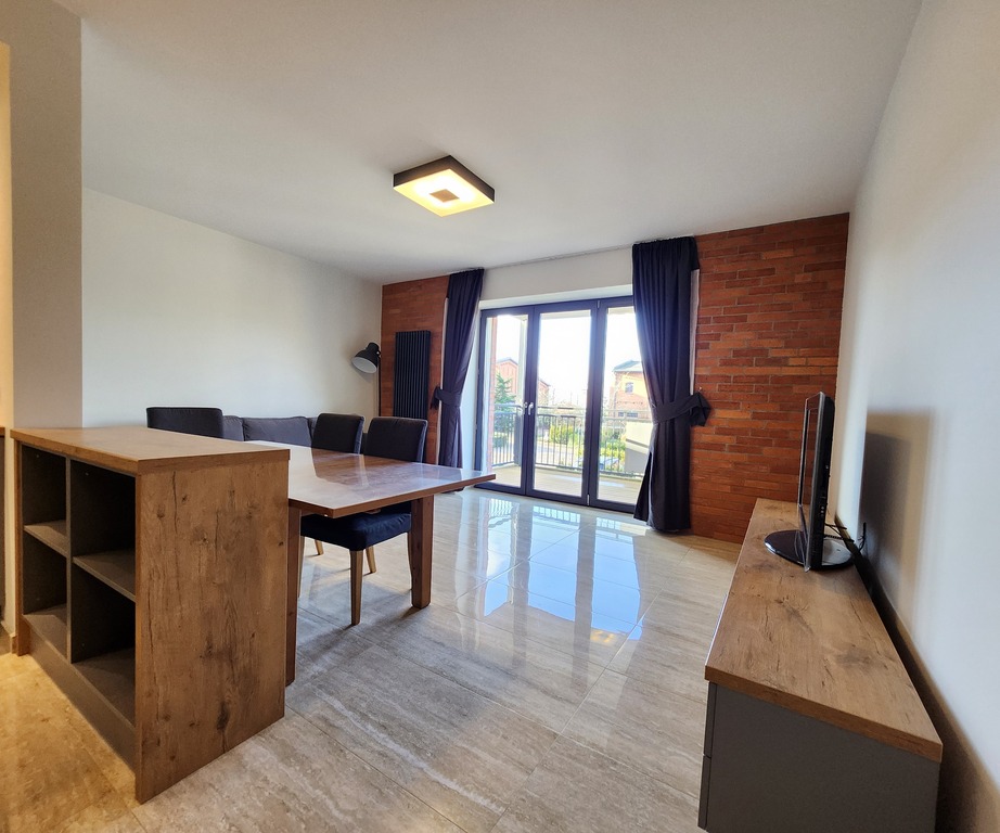 Na powierzchnię mieszkania składają się spory salon z aneksem kuchennym oraz wyjściem na duży balkon, 2 sypialnie, łazienka z WC oraz duży korytarz.