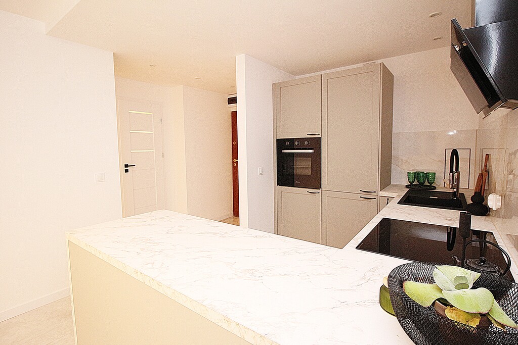 * SALONU z ANEKSEM KUCHENNYM wyposażonym w nowe, wysokiej jakości sprzęty AGD (zmywarka, płyta ceramiczna, piekarnik, pralka, lodówka, okap)