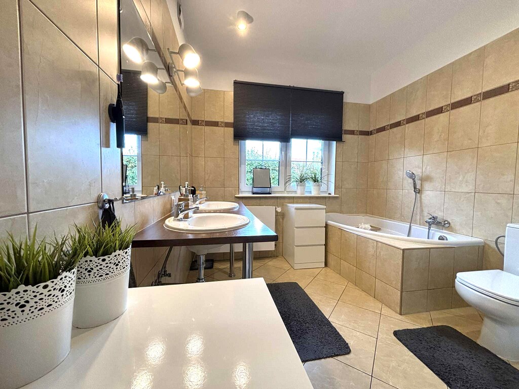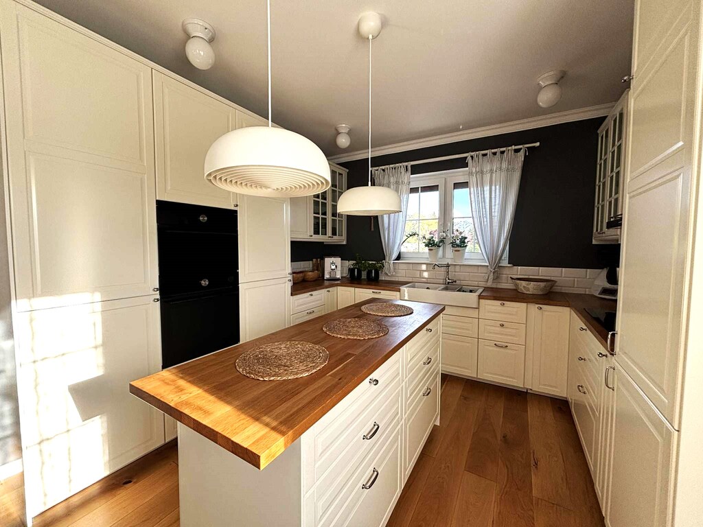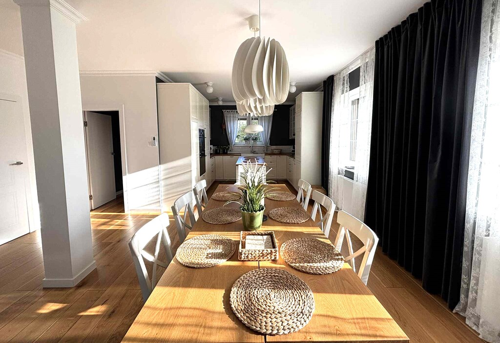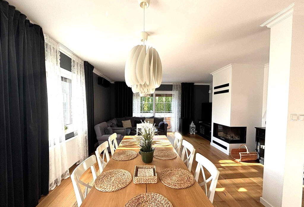 Mamy przyjemność przedstawić Państwu ofertę pięknego domu wolnostojącego położonego w malowniczej miejscowości Steklno.Lokalizacja:Oferowana nieruchomość znajduje się w pobliżu jeziora Steklno, które uznawane jest za jedno z najpiękniejszych i najbardziej malowniczych jezior w gminie Gryfino. W 2023 roku jakość wody w jeziorze została oceniona na doskonałą, a od 1 maja 2025 roku jezioro udostępnione zostało do wędkowania dla członków Polskiego Związku Wędkarskiego.Bardzo atrakcyjna i spokojna okolica sprzyjająca relaksowi, w sezonie letnim otwarte jest kąpielisko, na plaży znajduje się plac zabaw, boisko do siatkówki, przebieralnia, toalety, a także miejsce na ognisko.W niedalekiej odległości przebiega ścieżka rowerowa między Gryfinem a Swobnicą, która jest częścią szlaku Blue Velo, i prowadzi do Trzcińska-Zdroju. Trasa oferuje wiele widokowych miejsc, a także zwiedzanie zamku joannitów w Swobnicy.W miejscowości sklep spożywczy i przystanek autobusowy, bardzo dobry dojazd do Gryfina około 10 km, odległość od Szczecina około 35 km.W sąsiedztwie nieruchomości znajduje się nowa zabudowa mieszkaniowa jednorodzinna.Budynek znajduje się na lekkim wzniesieniu skąd rozpościera się widok na jezioro i okolicę. Dojazd do posesji dobry -drogą asfaltową, a następnie przez krótki odcinek żwirową drogą wewnętrzną.Opis technicznyBudynek wykonany w technologii tradycyjnej- parterowy, wolnostojący z poddaszem użytkowym i garażem w bryle budynku.Powierzchnia całkowita domu -198,50 m2, użytkowa- 128,90 m2, działka 777 m2.Dom o bardzo funkcjonalnym układzie pomieszczeń, jego przestrzeń wyraźnie dzieli się na strefę dzienną, strefę prywatną (nocną) i gospodarczą.Strefę dzienną tworzy duży salon z jadalnią, przy którym znajduje się otwarta kuchnia- łączna powierzchnia 50 m2.Z salonu wyjście na komfortowy taras (23 m2) i dalej do pięknego ogrodu. W salonie narożny kominek.Z całą pewnością ten salon jest wizytówką oferowanego domu i zachęca do spędzenia w nim wspólnego czasu.Przy salonie toaleta dla gości (2 m2). przy wejściu do domu wiatrołap (2 m2), holl (6 m2).Strefa nocna to : pokój kąpielowy z oknem (9 m2), garderoba z oknem (6 m2), przedpokój, trzy sypialnie 13, 5 m2 i 10, 5 m2.Z mniejszej sypialni wejście na poddasze, gdzie znajduje się trzeci pokój z garderobą (powierzchnia liczona po podłodze 70 m2 )- to miejsce, doskonale sprawdzi się jako gabinet czy pracownia. W dalszej części poddasza strych do przechowywania rzadziej używanych rzeczy.W części gospodarczej znajduje się garaż 18 m2 i pomieszczenie gospodarcze, w którym znajduje się piec, a także zaaranżowana została kuchnia letnia.Standard wykończeniaDom wykończony w wysokim standardzie konsekwentnie utrzymany w klasycznym i bardzo eleganckim stylu.Niespełna 5 lat temu w budynku przeprowadzony został kompleksowy remont w wyniku którego wykonane zostały następujące prace:- elewacja budynku została wykończona dekoracyjnym tynkiem w oryginalnym odcieniu, który świetnie współgra z kolorem stolarki okiennej, drzwiowej i kolorem pokrycia dachowego, a także jest bardzo dobrym tłem dla roślin ogrodowych,- wymienione zostały okna, zamontowane zostały rolety zewnętrzne (elektrycznie sterowane) a także moskitiery, parapety granitowe, piękne zewnętrzne drzwi dębowe,- w całym domu położone zostały deski dębowe w pięknym ciepłym kolorze, na poddaszu drewniane parkiet- ściany gładzone w efektownej kolorystyce, z dekoracyjnymi listwami przysufitowymi, które sprawiają, że wnętrze wygląda bardzo elegancko i luksusowo- solidne drzwi wewnętrzne firmy Porta z cichym domykiem- w każdym pomieszczeniu nowe grzejniki, a także klimatyzacjaŁazienka i wc wykończone w pastelowej kolorystyce, sanitariaty dobrej klasy.W cenie domu zostaje ponadczasowa drewniana zabudowa meblowa w kuchni wraz z kompletnym wyposażeniem, meble znajdujące się w wiatrołapie, zabudowa garderoby i meble w łazience.Właściciel za dodatkową opłatą może pozostawić wszystkie meble widoczne na zdjęciach, oferta godna uwagi, gdyż każdy z elementów jest w bardzo dobrym stanie i wysokiej jakości (meble w salonie drewniane), a dobrane kolory i materiały tworzą spójną całośćOgródPosesja ogrodzona, zastosowano ogrodzenie, które komponuje się z architekturą i otoczeniem domu. Wjazd przed budynkiem wyłożony polbrukiem, dwie bramy wjazdowe elektrycznie sterowane, brama garażowa firmy Horman z napędem.Piękny ogród zaprojektowany przez architekta krajobrazu. Bardzo przemyślana koncepcja, która pozwoliła na efektowne i funkcjonalne rozmieszenie roślin, tarasów, kącika wypoczynkowego, altany, a także doboru oświetlenia, które stwarza magiczną atmosferę po zmroku .Nad tarasem zamontowana została duża, elektrycznie sterowana markiza, co pozwala na korzystanie ze strefy wypoczynku nawet w słoneczne lub lekko deszczowe dni. W ogrodzie zainstalowano system nawadniania trawnika, a także kosiarkę samojezdną, która pozostaje w cenie.Na posesji także pomieszczenie gospodarcze na sprzęt ogrodniczy itp. Za dodatkową opłatą właściciel może pozostawić meble ogrodowe .MediaBudynek podłączony do sieci wodociągowej i kanalizacyjnej, energia elenktyczna, światłowód. Źródło centralnego ogrzewania piec elektrycznyfirmy ,,Kospel?, do którego można podłączyć pompę ciepła tworząc system hybrydowy. Dodatkowo kominek z wyprowadzonym kanałem dystrybucji ciepłego powietrza. Klimatyzacja w całym budynku. Zainstalowano zmiękczacz wody. Podatek od nieruchomości wynosi 600 zł rocznie.Krótki okres wydania. Prezentacja w czasie dogodnym dla klientów.Polecamy to wyjątkowy, klimatyczny dom w bardzo atrakcyjnej cenie- tylko 999.000 zł*powyższe informacje zostały sporządzone na podstawie oświadczeń i nie są ofertą w rozumieniu przepisów prawa - zalecamy ich osobistą weryfikację.