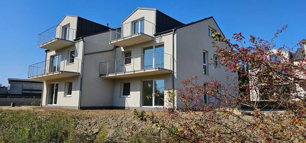 Standard budynku:- Płyta fundamentowa dobrze izolowana (25 cm XPS)- Ściany ocieplone styropianem grafitowym (20 cm)- Elewacja CAPAROLA barwiona w masie- Dach pokryty blachą na rąbek, rynny metalowe- Okna PCV 3-szybowe (Salamander) z nawiewnikami- Tarasy na izokorbach z barierkami ze stali nierdzewnej- Wentylacja grawitacyjna