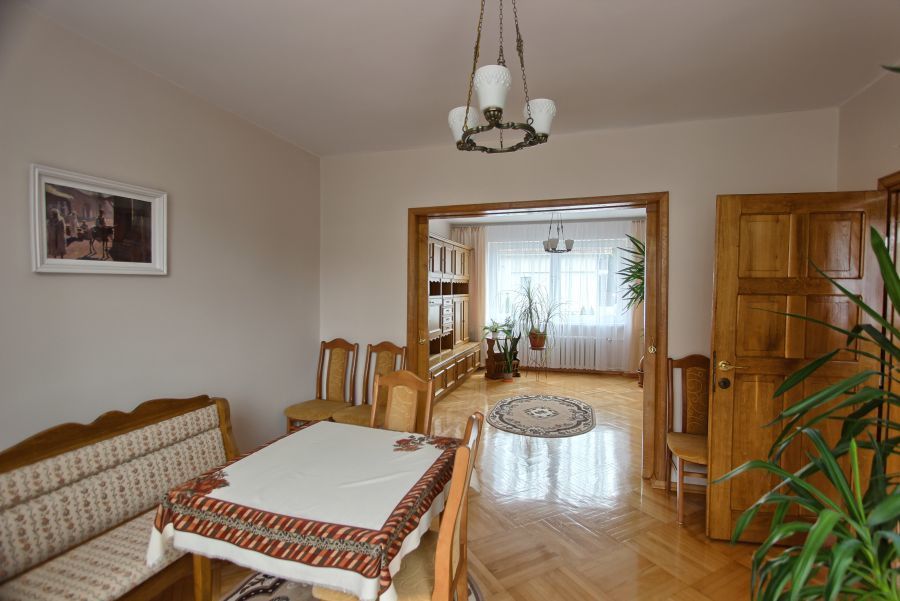W całym domu na podłogach zadbany parkiet, wymienione okna, piękna klatka schodowa. Z salonu wyjście na duży, słoneczny taras. W trzech sypialniach wyjście na balkony.