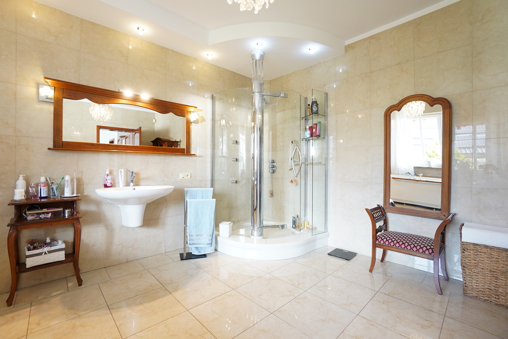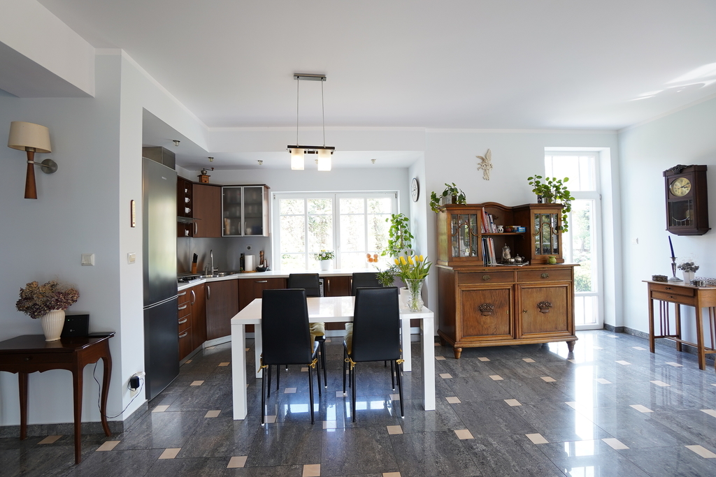 Dom posiada wiele nowoczesnych rozwiązań m.in: studnia głębinowa z hydroforem, instalacje alarmowe, kominek, ogrzewanie podłogowe. Dom jest wykonany z najwyższej jakości materiałów i jest gotowy do wprowadzenia się. Nieruchomość posiada wyjątkowy styl, z każdej strony domu wpada dużo światła, przez co wnętrze jest bardzo jasne .