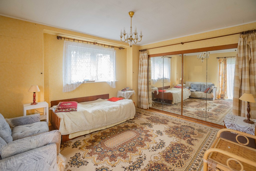 - PIĘTRO, 2 pokoje, łazienka i korytarz, balkon od strony ogrodu,