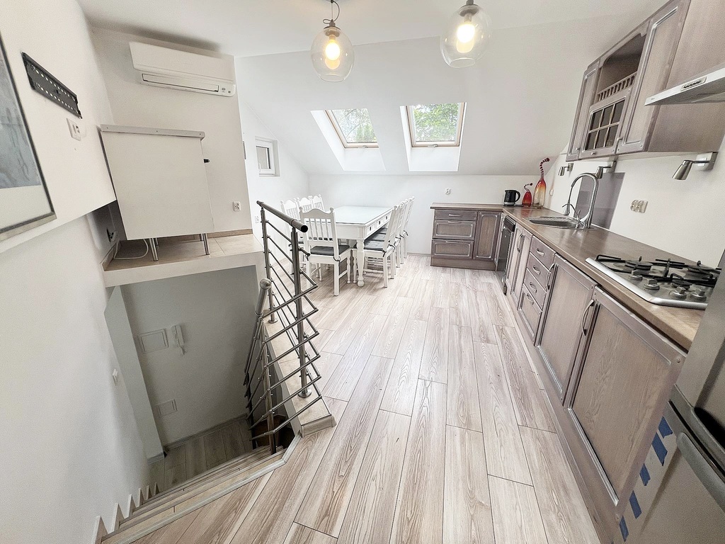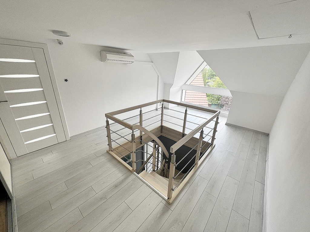 -Bardzo dużego korytarza, który może pełnić funkcję pokoju wspólnego z dużym oknem i wejściem na strych