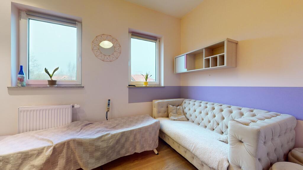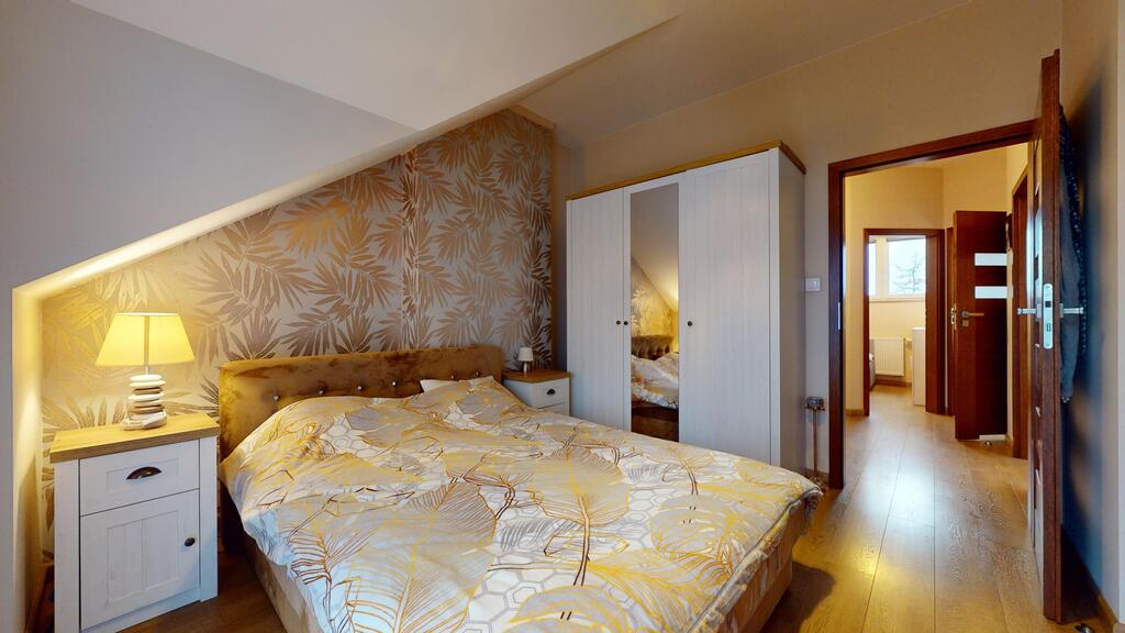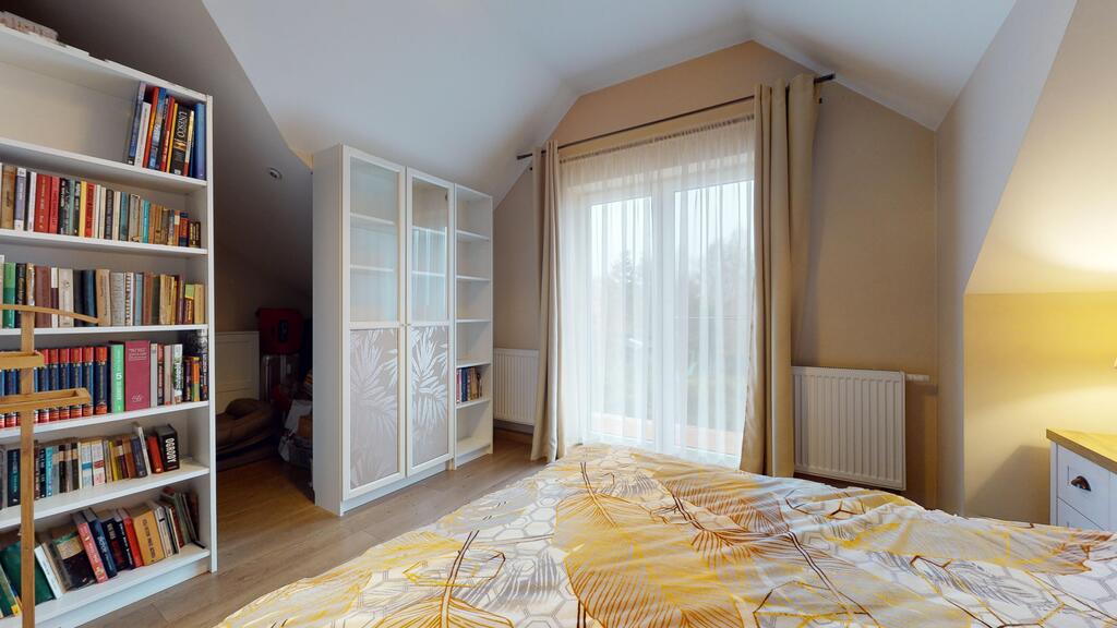 ? Piętro: 3 sypialnie w tym jedna duża z garderobą, łazienka z pralką i wanną, nieduży balkon.