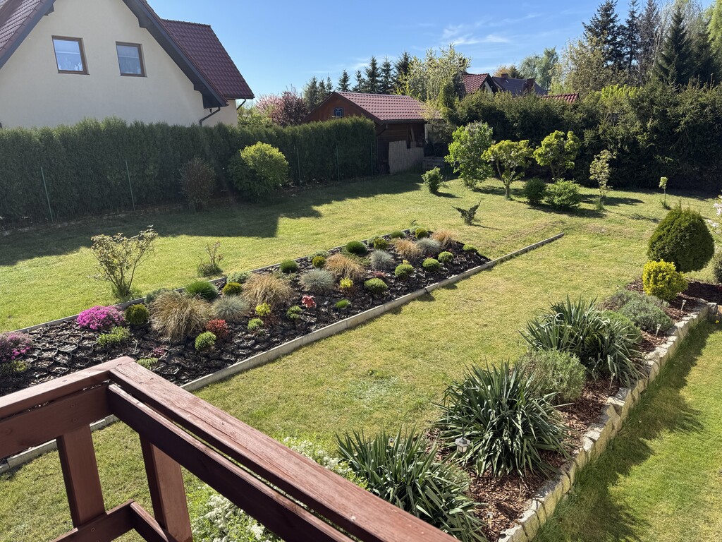 ? Ogród: nasadzenia ozdobne, zagospodarowana skarpa, rabaty, drewutnia