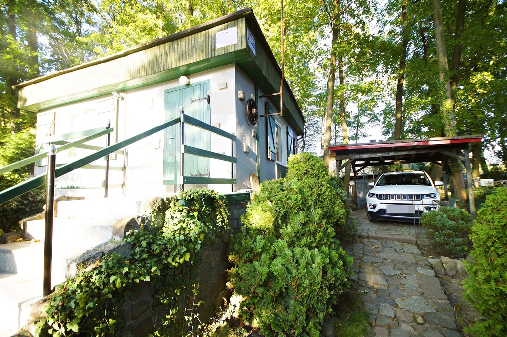 Na działce znajduje się również miejsce na samochód oraz dodatkowe pomieszczenie gospodarcze- szopa na narzędzia o powierzchni 10m2.