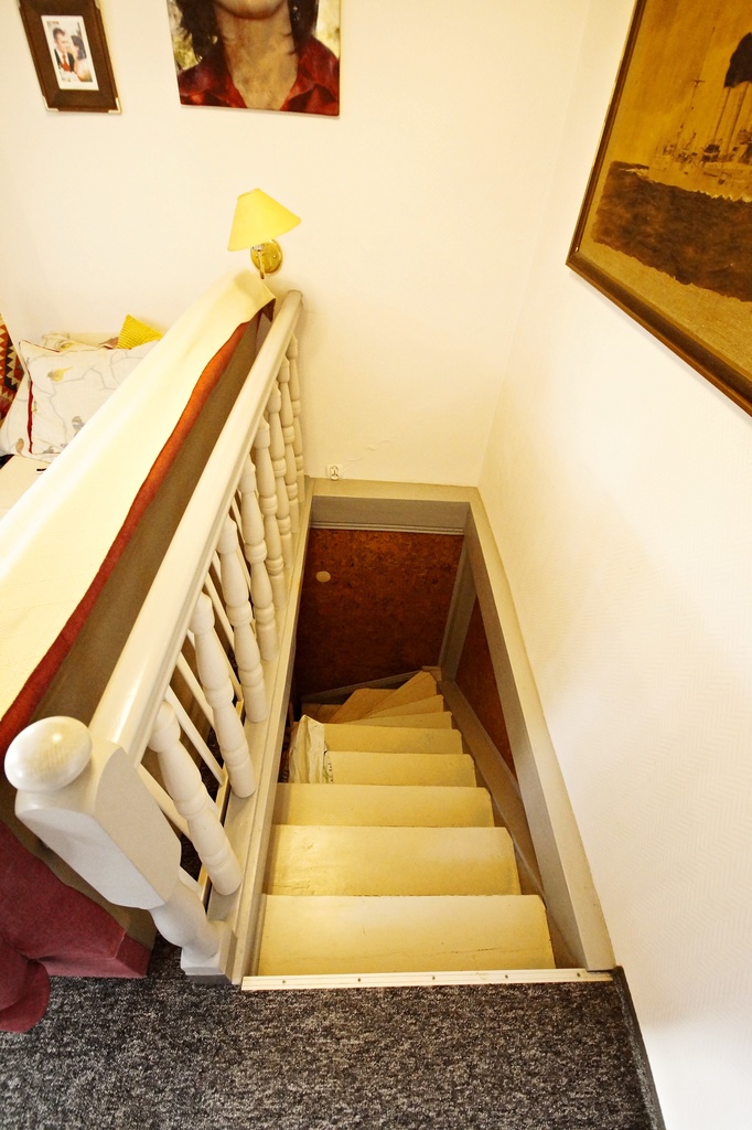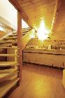 - Pokój dzienny 36 m2 z pokoju zejście drewnianymi schodami na parter.