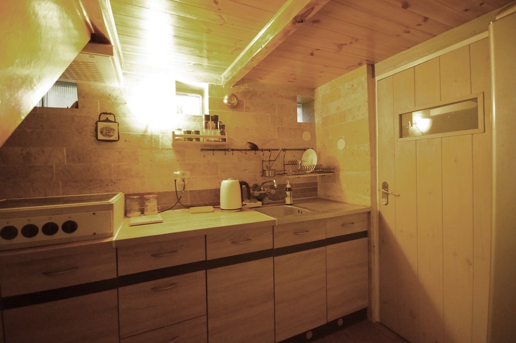 - Kuchnia z aneksem kuchennym wyposażona we wszystkie sprzęty AGD o pow. 5 m2