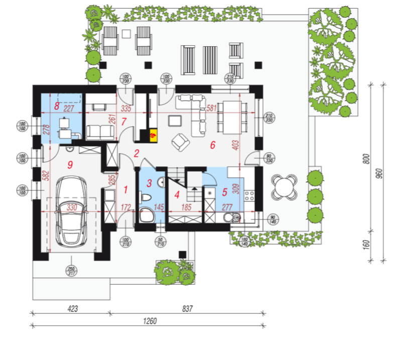 - duża działka z szerokimi możliwościami aranżacyjnymi.
