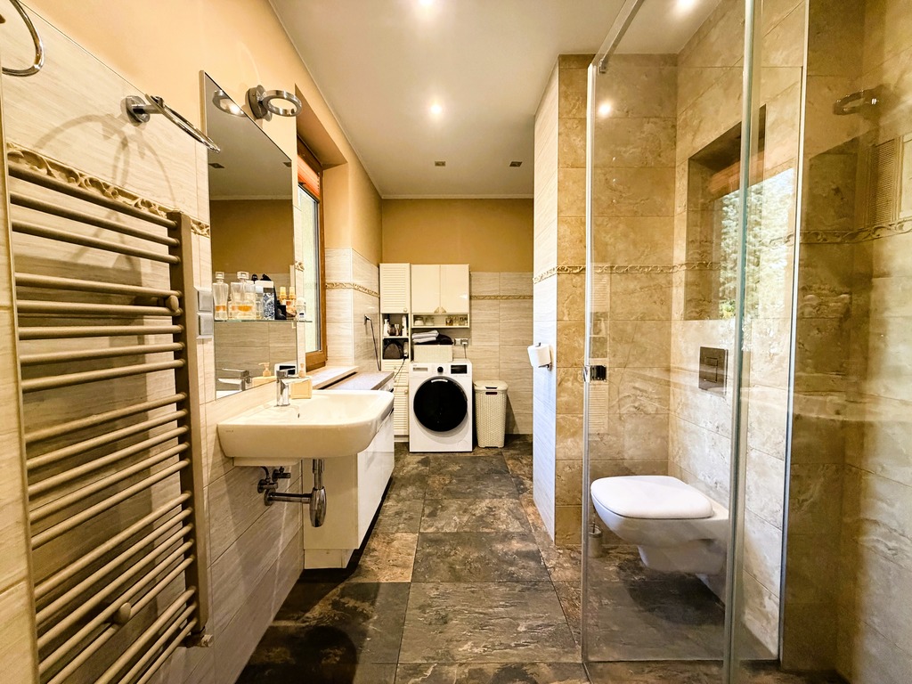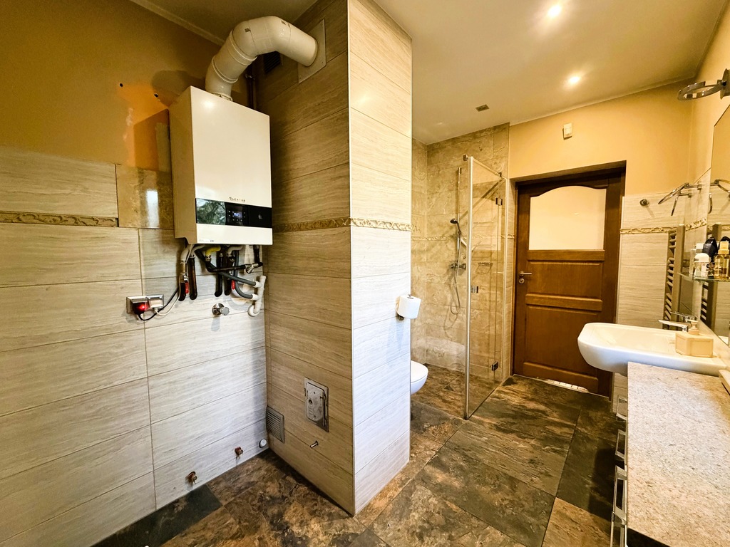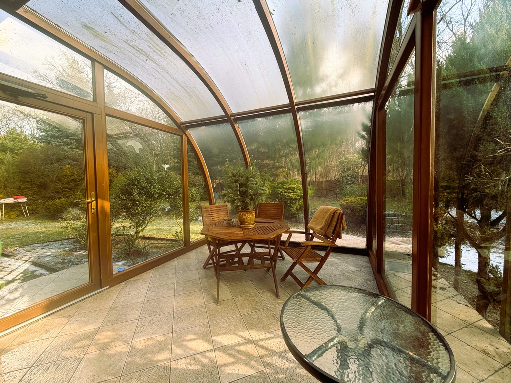 Serdecznie zapraszamy do zapoznania się z ofertą sprzedaży domu wolno stojącego w wyjątkowo pożądanej lokalizacji na osiedlu Bukowym.Wybudowany w 2003 roku w technologii tradycyjnej na działce około 700m2 o regularnym kształcie z licznymi, pięknymi nasadzeniami (wygospodarowane dodatkowe miejsce parkingowe na podjeździe). Całość ogrodzona z bramą wjazdową automatyczną.Powierzchnia użytkowa domu wynosi 121,2m2. Dodatkowo garaż w bryle budynku z bramą na pilota (oraz wiata znajdującą się przy nim) oraz strych do ewentualnej adaptacji.Na parterze znajdują się:- salon z kominkiem i wyjściem na taras - ogród zimowy (atutów tego typu rozwiązania nie trzeba wymieniać), a z niego zejście do ogrodu,- osobną kuchnię z oknem z drewnianymi meblami w zabudowie (wejście zarówno z korytarza jak i z salonu),- duża łazienka z oknem z prysznicem typu walk-in, toaletą, umywalką i częścią gospodarczą (pralnia i nowy, niespełna roczny piec dwubiegowy marki Buderus),- gabinet (ustawny, w kwadracie),- przedpokój,- sień.Na piętrze natomiast znajdują się:- główna sypialnia z osobną łazienką z wc z oknem i wanną,- pokój gościnny,- dodatkowa sypialnia,- trzecia łazienka z wc z oknem i wanną,- korytarz (z niego wejście na strych).Na podłogach w pokojach parkiet drewniany. W kuchni i łazienkach gresy lub terakota. Ściany gładzone, malowane. Dachówka ceramiczna. Okna PCV z okleiną drewnianą.Ogrzewanie gazowe. Dodatkowo zamontowana klimatyzacja z funkcją zarówno chłodzenia jak i dogrzewania.Lokalizacja zapewnia nam dostęp do pełnej infrastruktury (szkoły, przedszkola, przychodnia, sklepy, pętla autobusowa), a jednocześnie daje możliwość wypoczywania w ciszy, spokoju i komforcie (bezpośrednie sąsiedztwo parku i Puszczy Bukowej).Polecamy i zachęcamy do osobistej weryfikacji tej nieruchomości. Oferta na wyłączność.Termin wydania do ustalenia.*powyższe informacje zostały sporządzone na podstawie oświadczeń i nie są ofertą w rozumieniu przepisów prawa - zalecamy ich osobistą weryfikację.