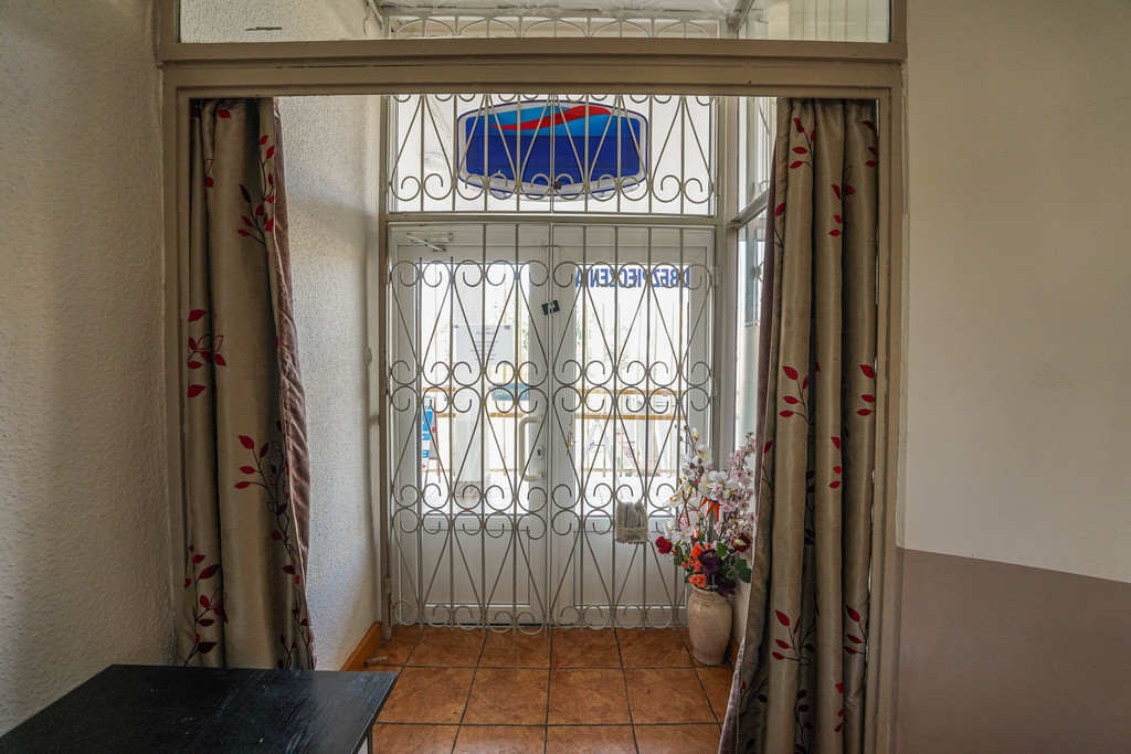 Lokal znajduję się na 1 piętrze budynku handlowego, okna i drzwi zabezpieczone kratą.