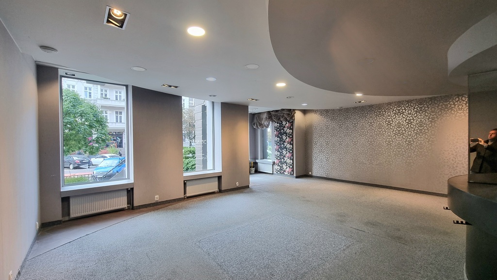 - Reprezentacyjna sala główna (ok. 44 m?): jasna, dobrze oświetlona, z wejściem prosto z chodnika, stanowiąca idealną wizytówkę Państwa firmy.