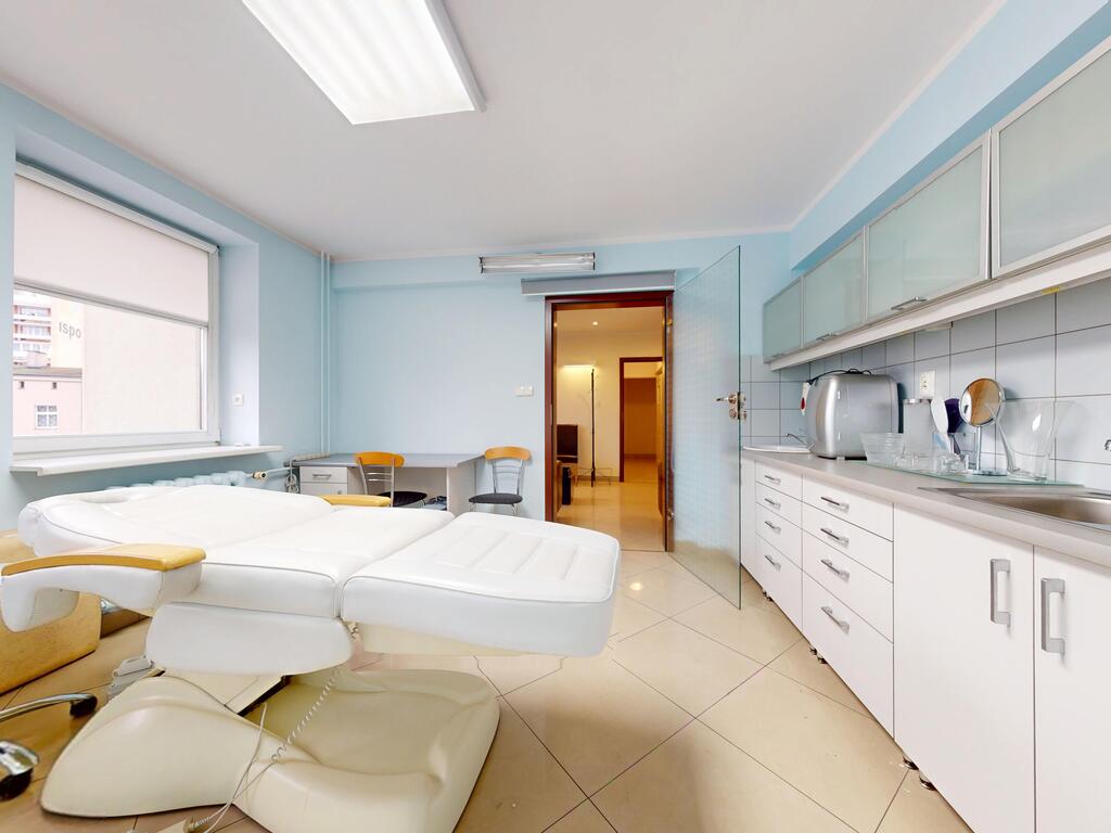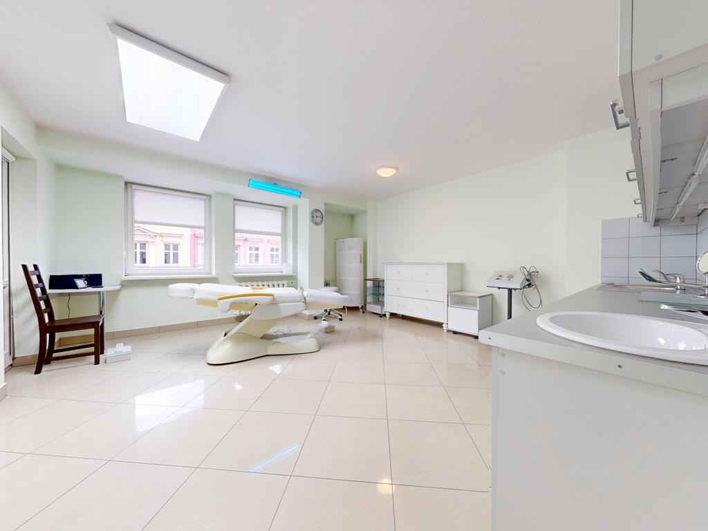 Lokal jest ładnie i funkcjonalnie urządzony, wykończony z dbałością o detale ? na podłogach kafle, ściany wykończone gładziami, estetyczna stolarka drzwiowa. W gabinetach zabudowa na wymiar, wszystko zostaje w cenie.