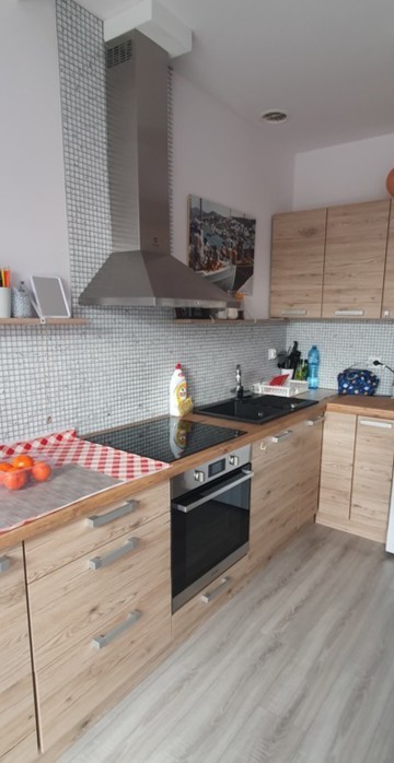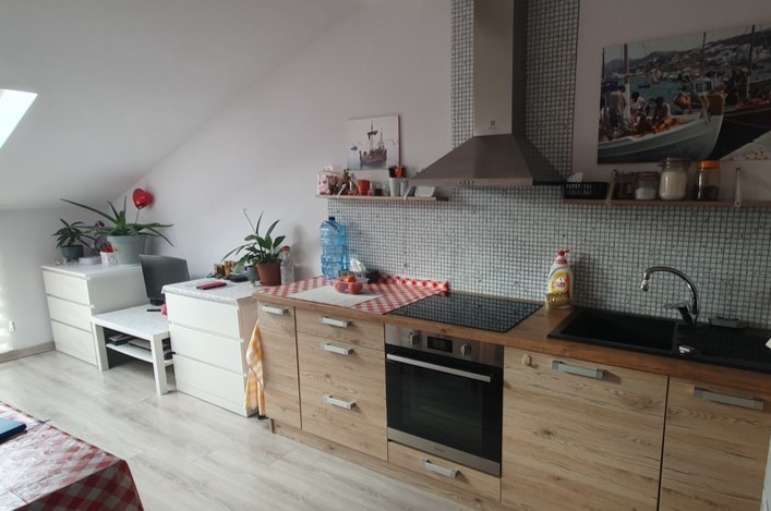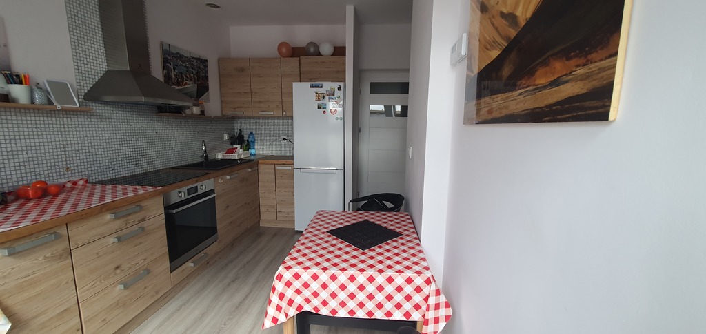 W kuchni meble wraz ze sprzętem AGD ( lodówka ,zmywarka ,płyta )zostają w cenie mieszkania , szafa w przedpokoju w zabudowie. W pokoju wydzielone miejsce do pracy przy komputerze.