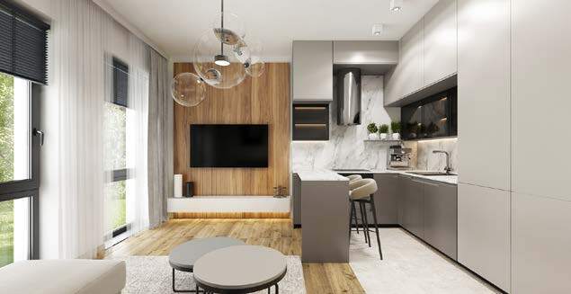 Apartamenty zostały tak zaprojektowane, by niezależnie od wielkości i pomysłów na ich aranżację, gwarantowały komfort i niezależność. Wszystkie z aneksem kuchennym ? w wersji jednopokojowej z przestronnym salonem, w wersji dwupokojowej z osobną, wygodną sypialnią. Do tego klimatyzacja, duże okna a w niektórych balkon.