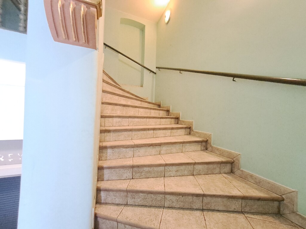 Odrestaurowana, czysta klatka schodowa , w której znajdują się m. in. pracownie projektowe i kancelarie prawne.