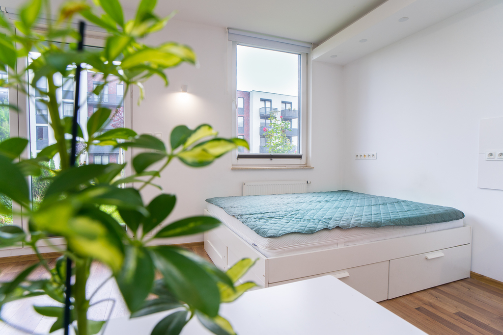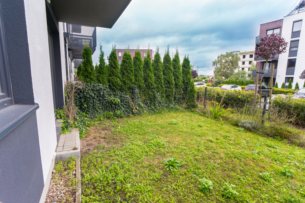 Nieruchomość o funkcjonalnym rozkładzie pomieszczeń, (przearanżowana z dwupokojowego mieszkania w otwartą formę) z oddzielną kuchnią, ogrodem i miejscem na taras.