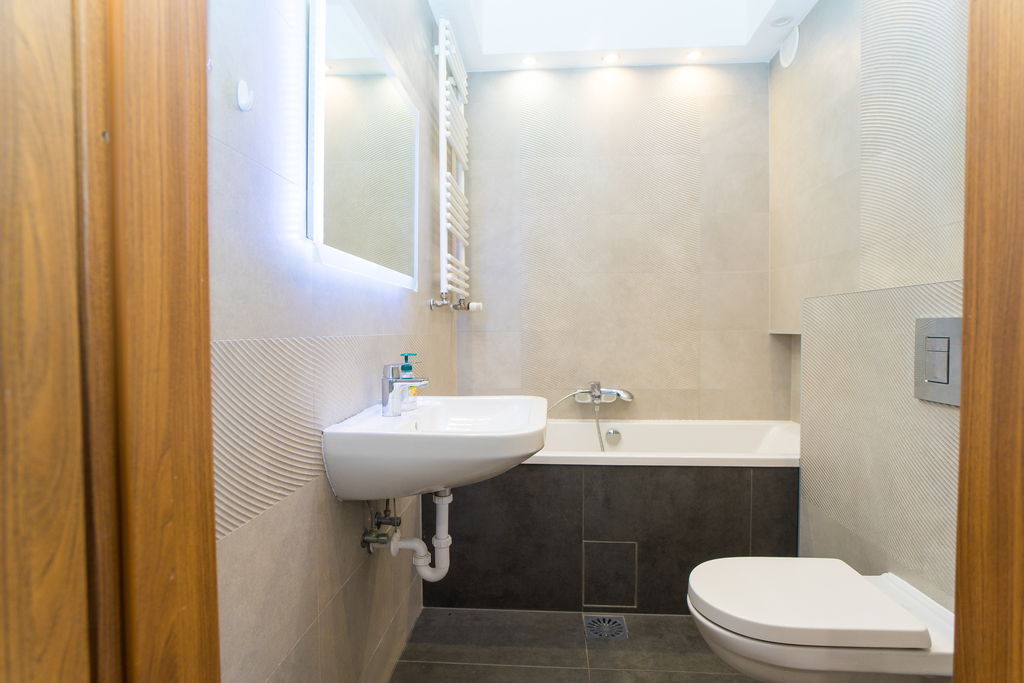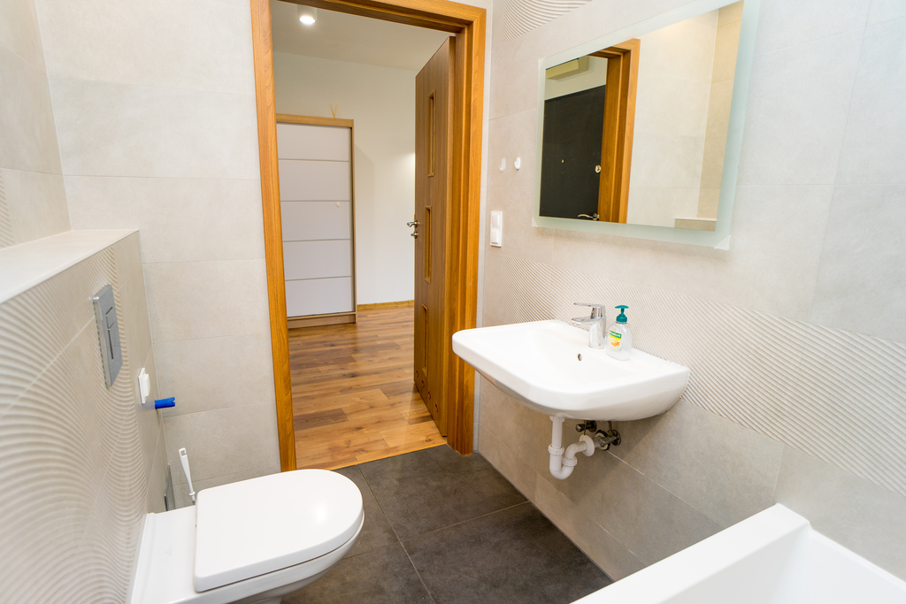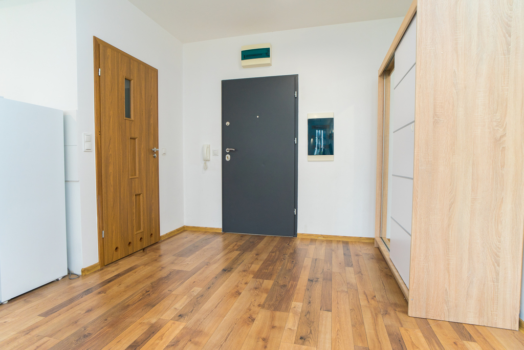 Ściany gładzone i malowane, na podłogach panele. Łazienka wykonana z wysokiej jakości materiałów (Villeroy & Boch). Okna PCV.