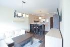 Kuchnia w formie aneksu wyposażona w meble i sprzęt AGD - lodówka, zmywarka, okap, płyta indukcyjna, piekarnik, czajnik.