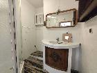 Przedpokój z szafą z lustrem oraz otwarta, klimatyczna kuchnia nadają wnętrzu przestrzeni. Drewniane detale w łazience pasują do obecnego wykończenia kuchni.
