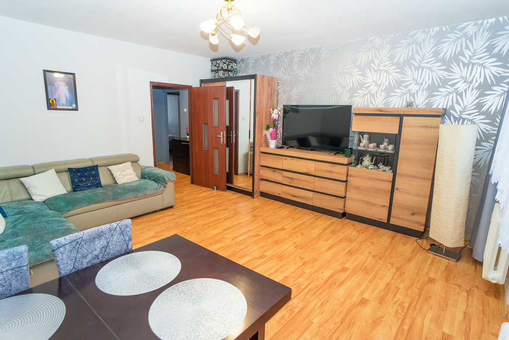 Mieszkanie kilka lat temu odświeżono i odmalowano. Na podłogach panele, w łazience gres, oraz glazura na ścianach.