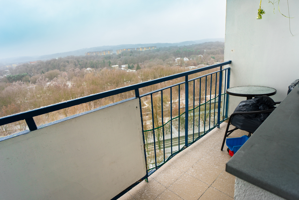 Mieszkanie położone jest na 12 piętrze ocieplonego wieżowca z 1982 roku.