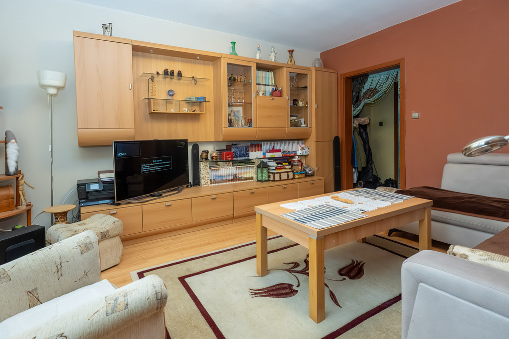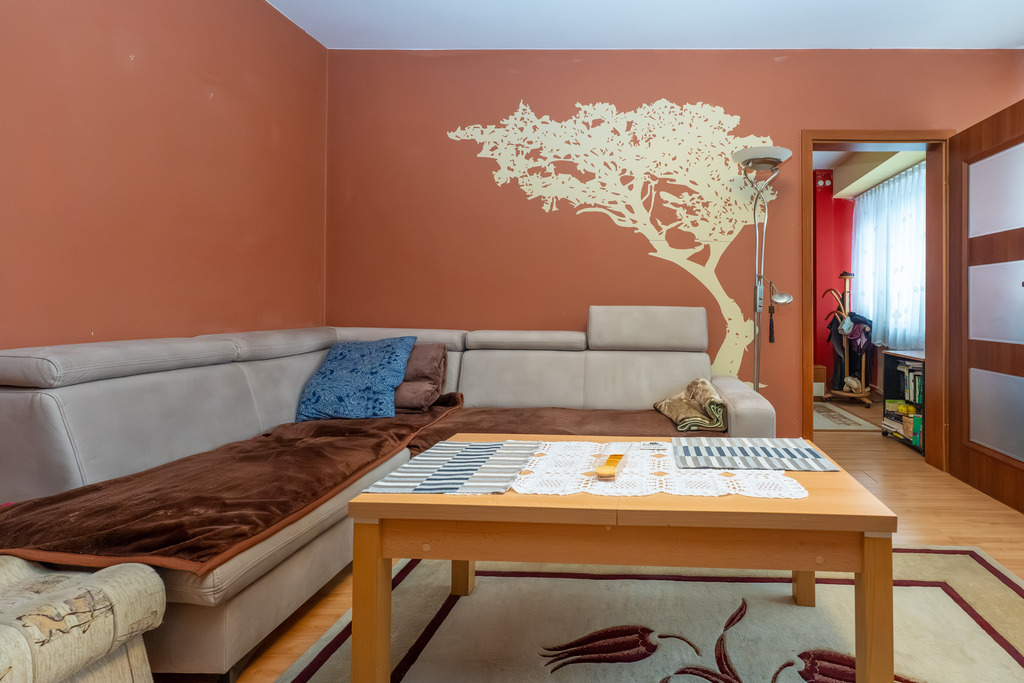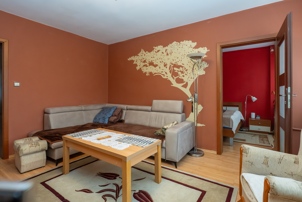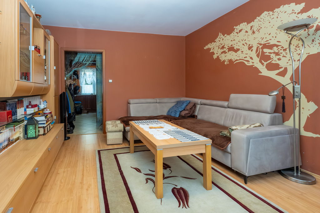 Mieszkanie o powierzchni użytkowej 56,66 m2 położone na parterze niskiego bloku.